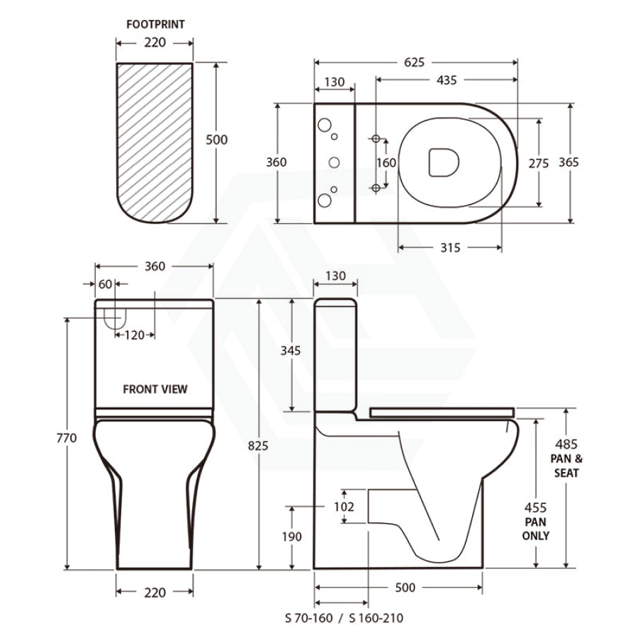 – Left OR right bottom inlet - Optional Toilet Back Rest