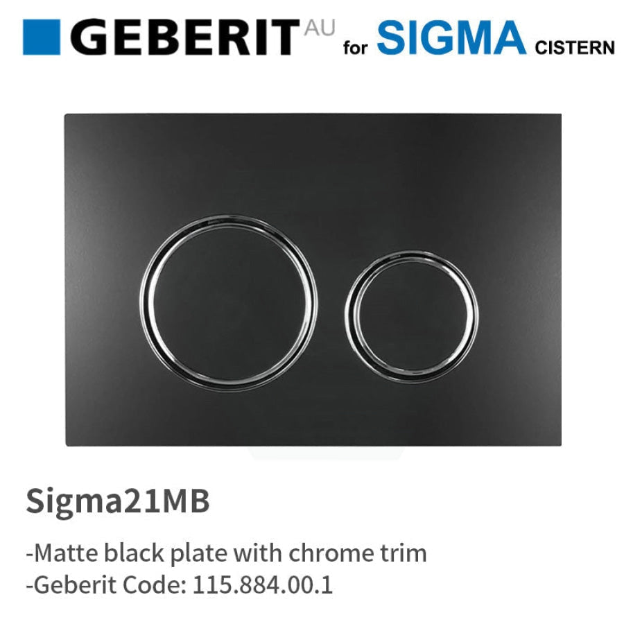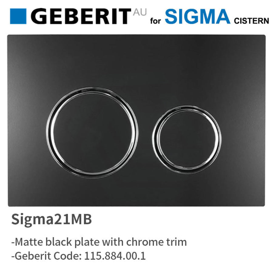 Geberit Sigma21MB Toilet Button Matte Black Plate Chrome Trim for Concealed Cistern 115.884.00.1