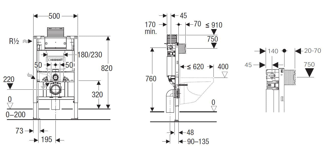 Geberit Kappa-F Framed Inwall Cistern Push Button Suitable for Wall Hung Toilet Pans Top or Front Flush Available