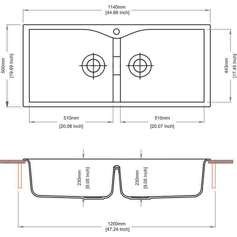 1140x500x230mm Quartz Granite Double Bowls Sink for Top/Under Mount in Kitchen Variant Colour Available