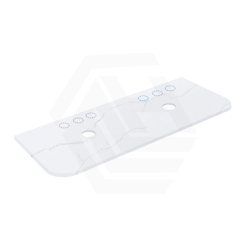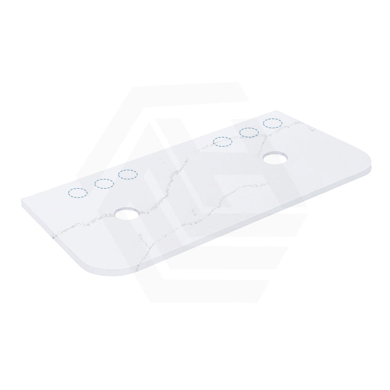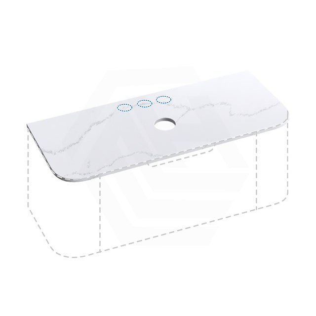 12mm Thick Lukka Calacatta White Curved Edge Solid Surface Stone Top with Center Waste Hole, 12/10/2 O'clock Semi Drilled Tap Hole Available At the Back 605-1805mm