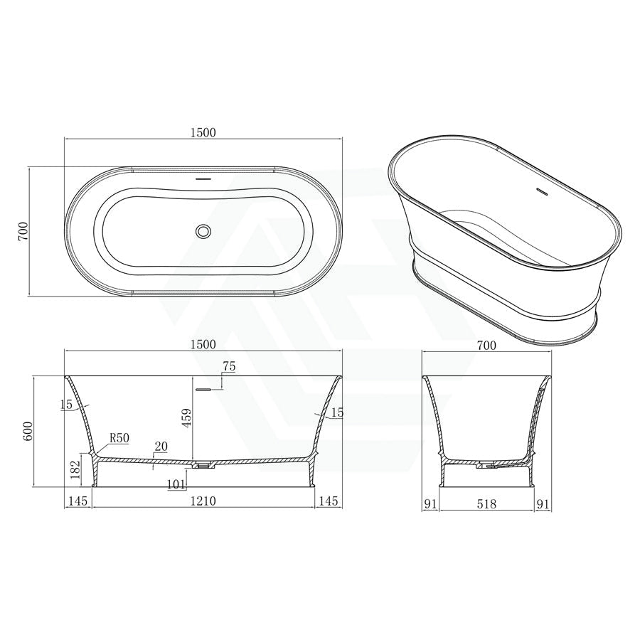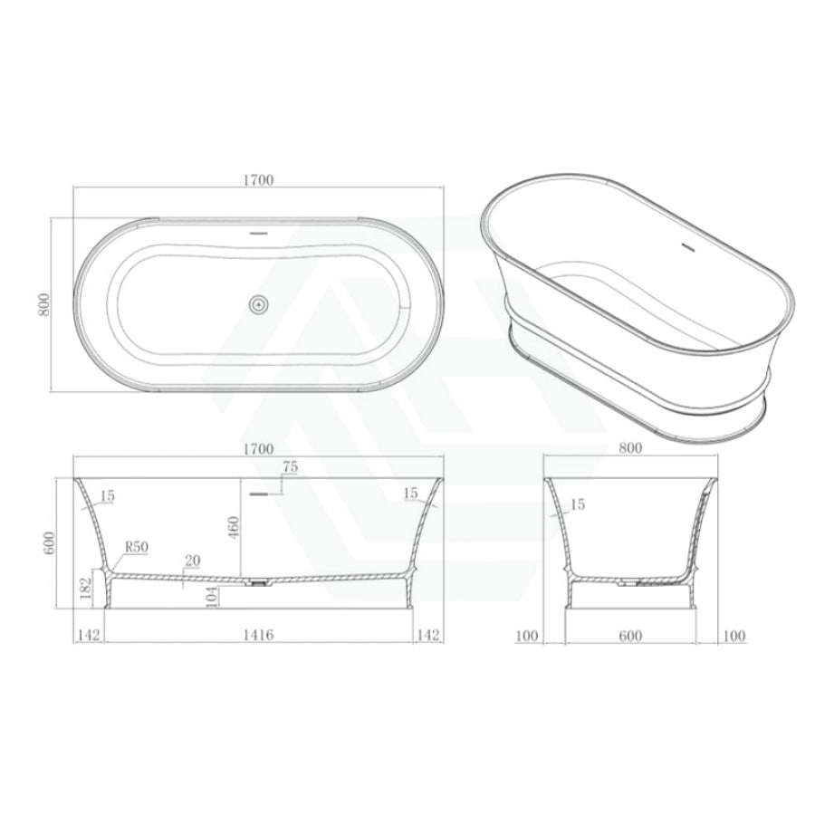 1500/1700mm CETO Harrington Solid Surface Stone Freestanding Bathtub with Overflow Matt White