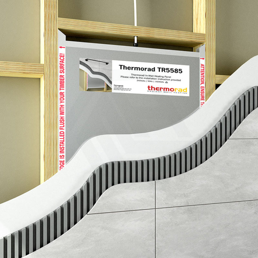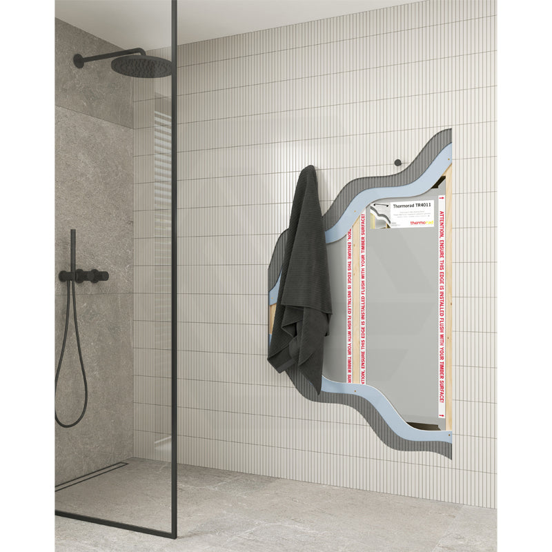 The Thermorad panel is installed in your wall cavity directly behind where your towel rail will be installed. The panel creates an invisible towel dryer that reduces the drying time of your towels by up to 70% compared to a non-heated rail.