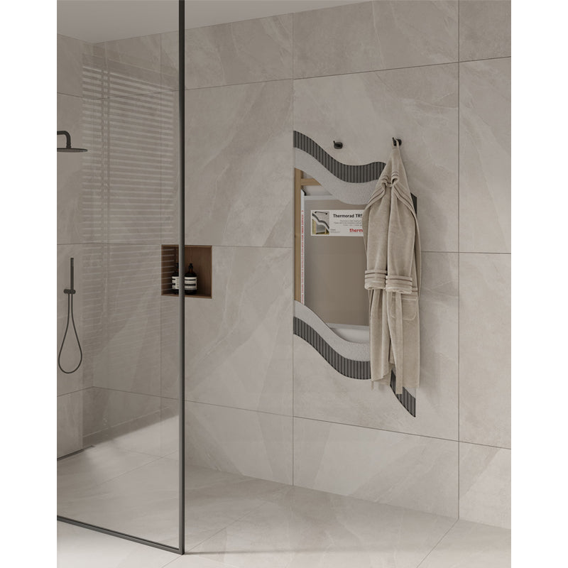 The Thermorad panel is designed to be concealed in the wall whilst radiating heat directly behind a towel rail to reduce the drying time by up to 70%