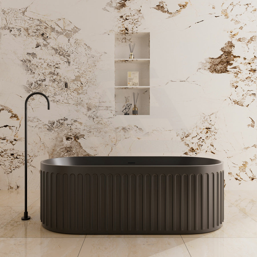 1700mm CETO Cascade Solid Surface Stone Freestanding Bathtub with Overflow Matt White/Matt Black