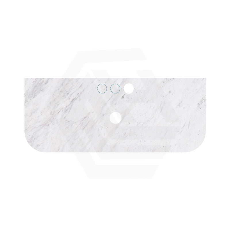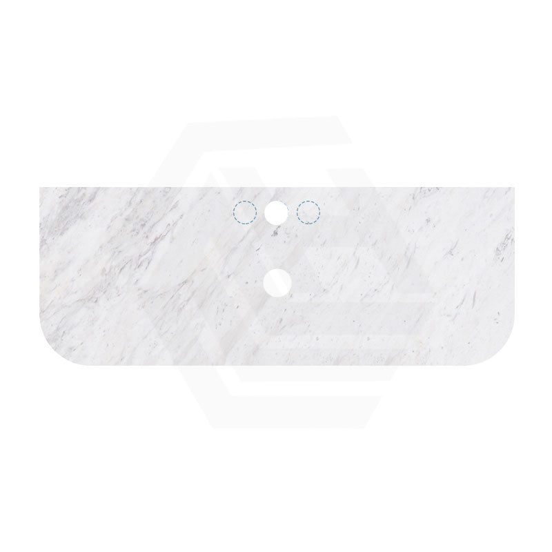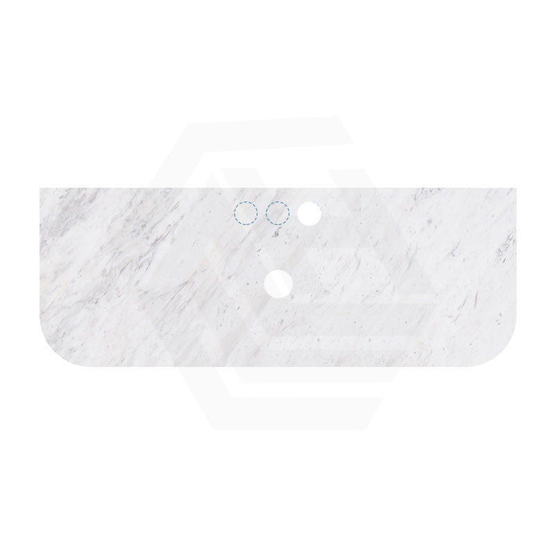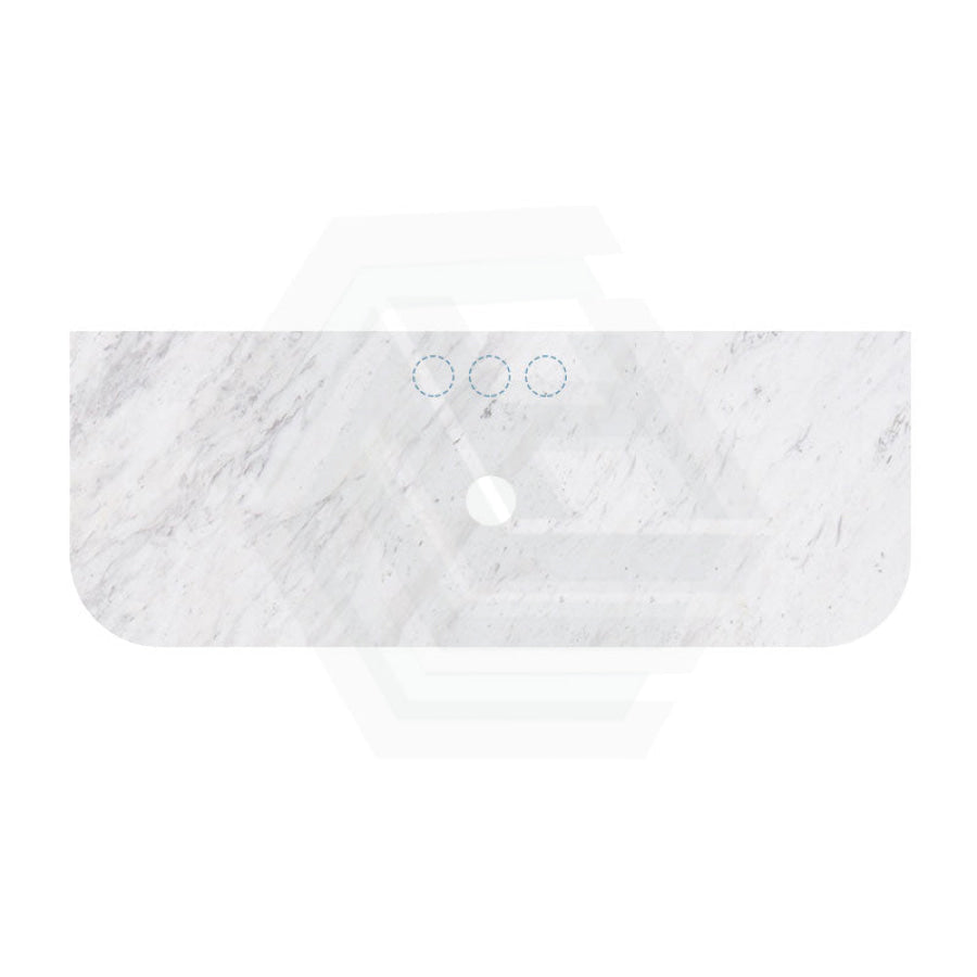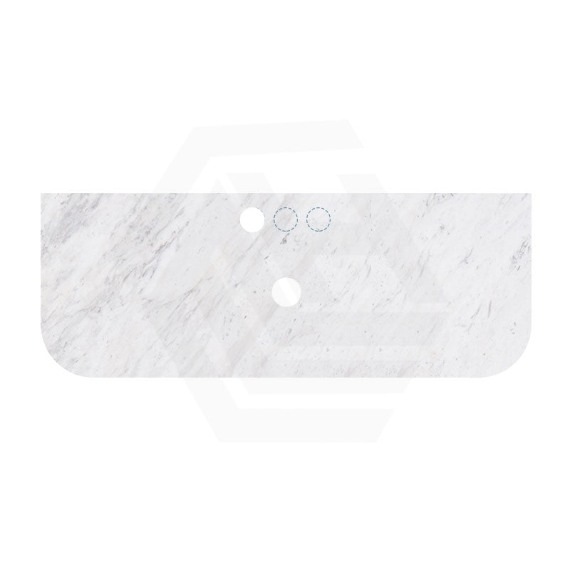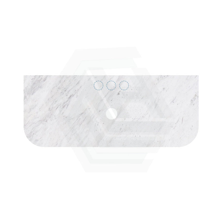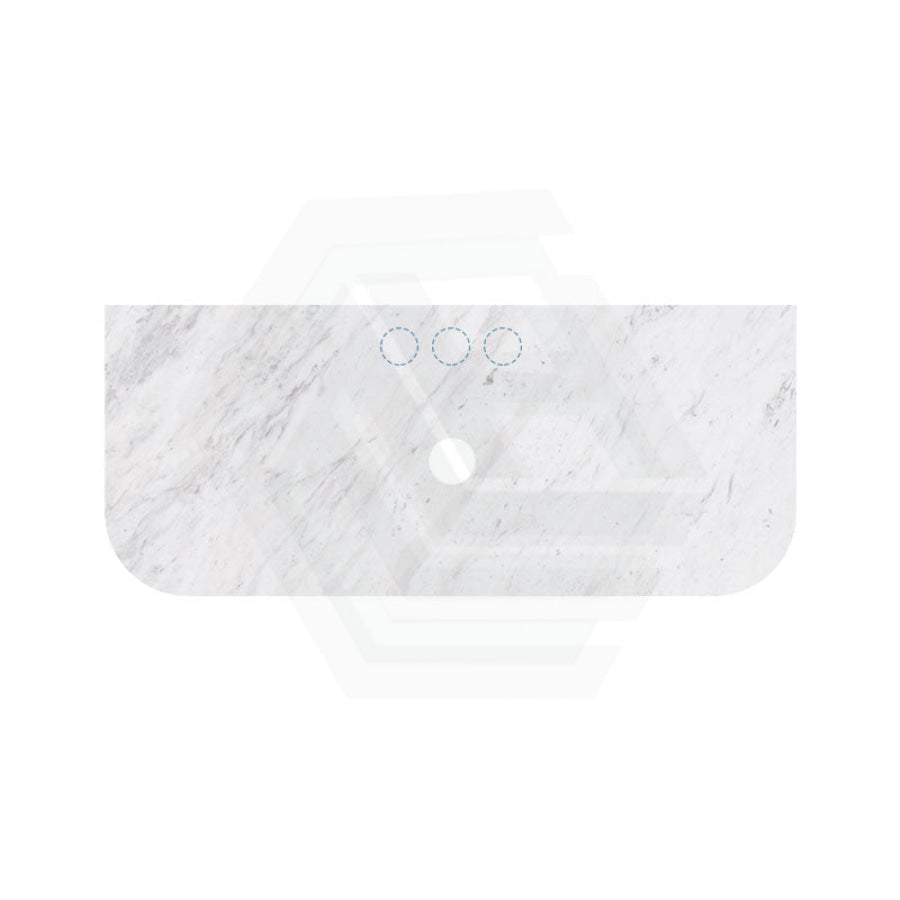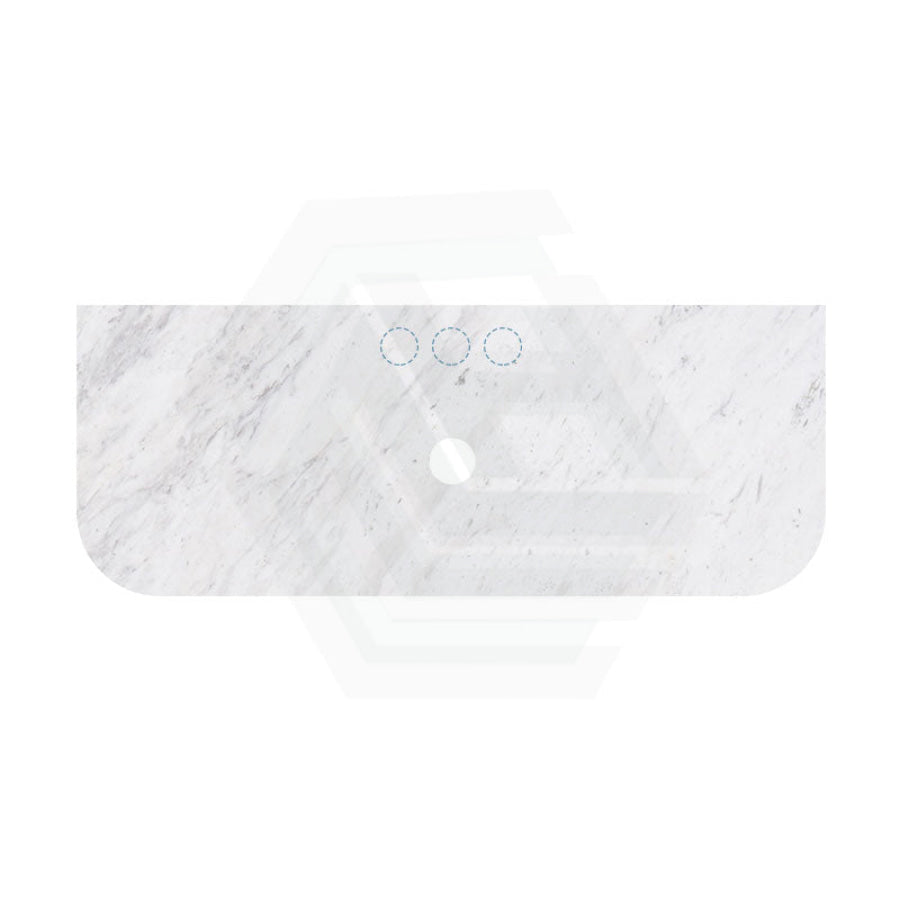 18mm Thick Lukka Carrara White Marble Curved Top with Center Waste Hole, 12/10/2 O'clock Semi Drilled Tap Hole Available At the Back 605-1505mm