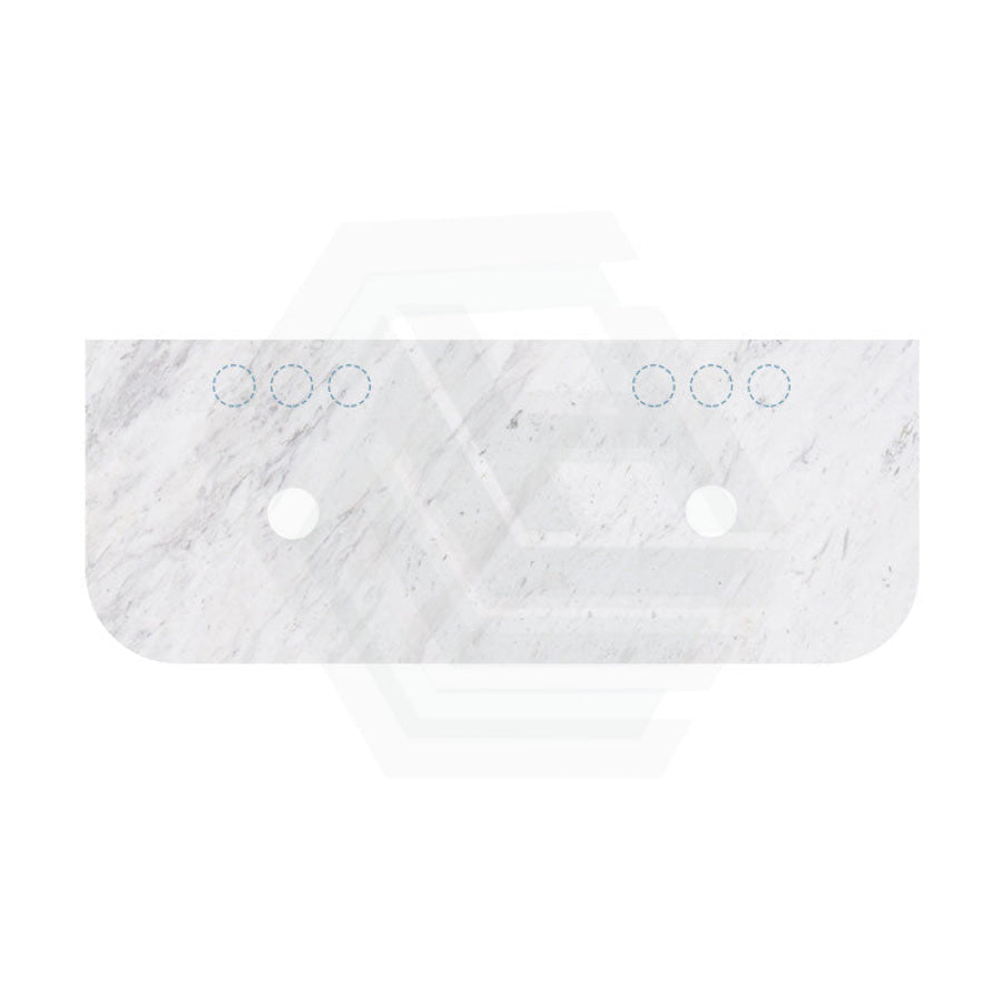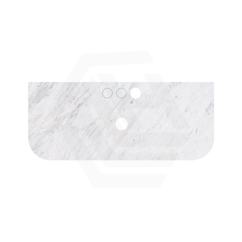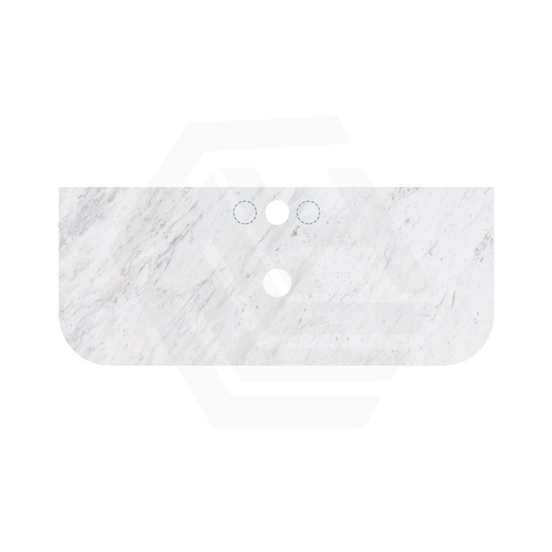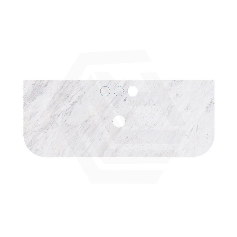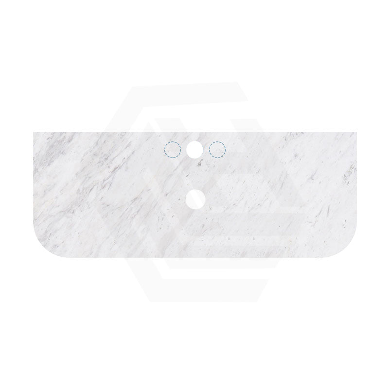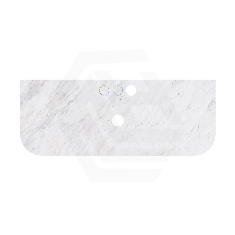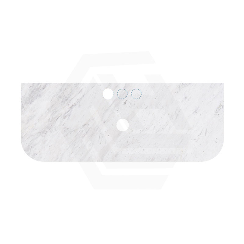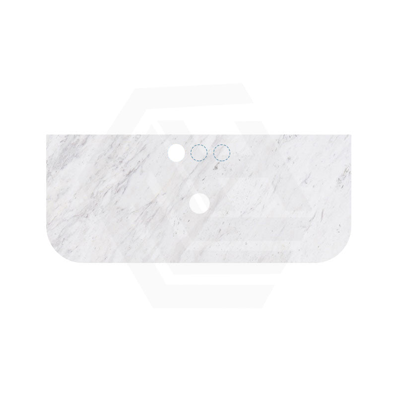 18mm Thick Lukka Carrara White Marble Curved Top with Center Waste Hole, 12/10/2 O'clock Semi Drilled Tap Hole Available At the Back 605-1505mm
