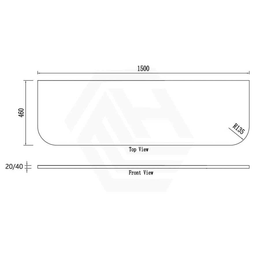 20mm Curved Edge Stone Top for Above Counter Basins Quantum Zero Midnight Black 600-1800mm