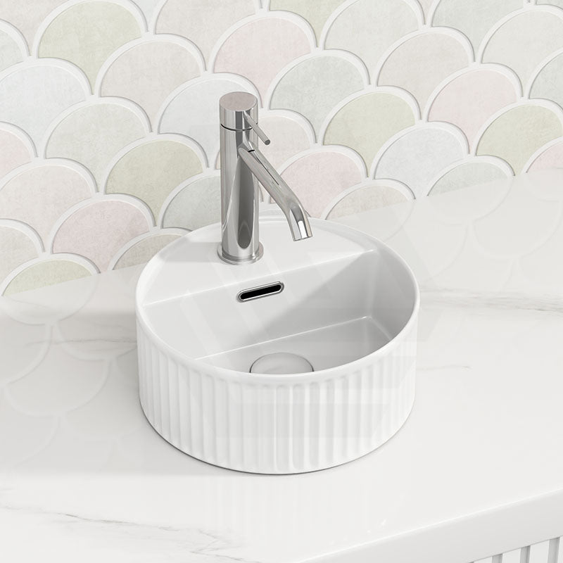 280x280x120mm Round Fluted Gloss White Above Counter Basin with Tap Hole