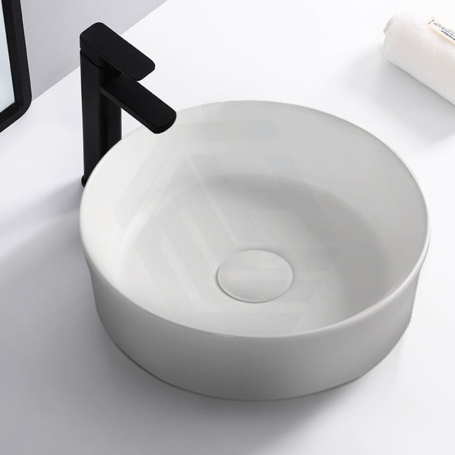 This 310x310x110mm above-counter ceramic basin features a classic round shape that suits a range of bathroom styles. Crafted from durable ceramic, it ensures longevity and easy maintenance. Available in various colours, it offers flexibility to complement your bathroom décor while providing a practical and stylish solution for daily use. Its dimensions make it ideal for both compact and spacious vanities.