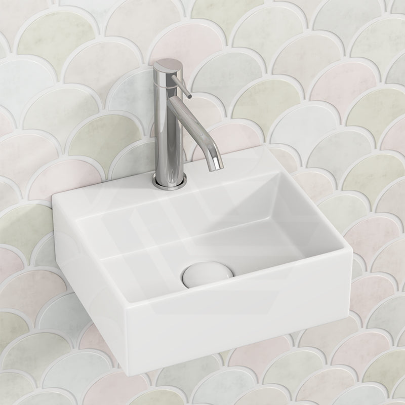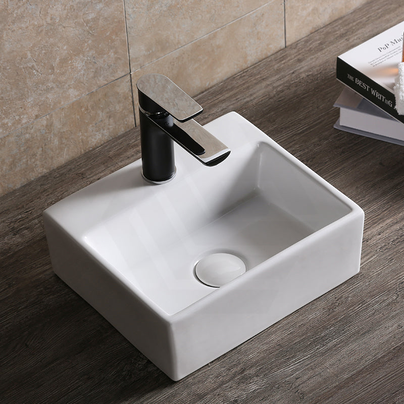335x290x120mm Rectangle Gloss White Ceramic Above Counter/Wall Hung Basin with Tap Hole