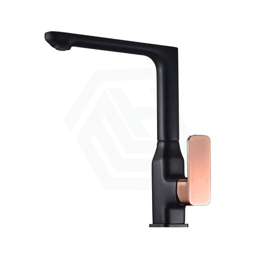 Seto 360 Swivel Solid Brass Matt Black & Rose Gold Handle Kitchen Sink Mixer Tap