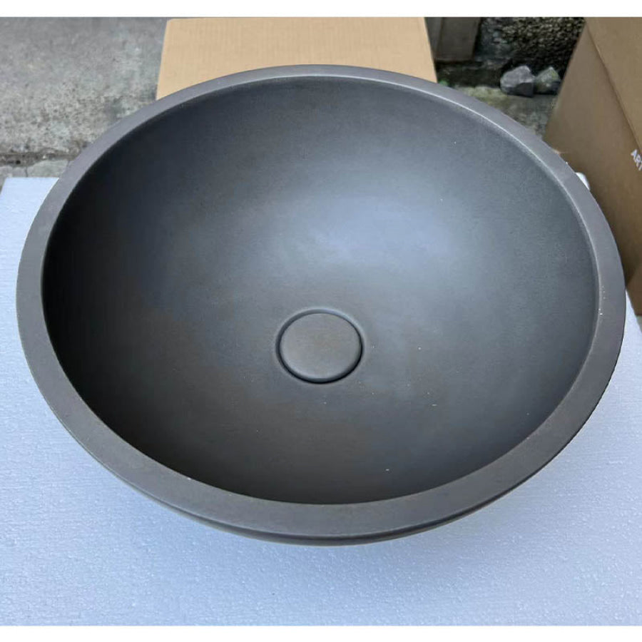 360mm Round Matte Grey Above Counter Concrete Basin Waste Included