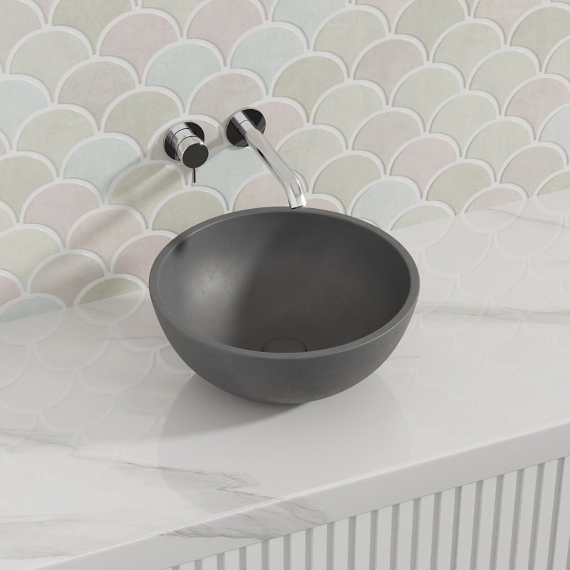 The 360mm Round Matte Grey Above Counter Concrete Basin gives a high-quality and elegant addition to any bathroom.