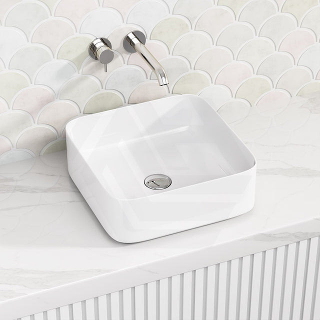 385x385x140mm Square Above Counter Gloss White Ceramic Basin for Bathroom
