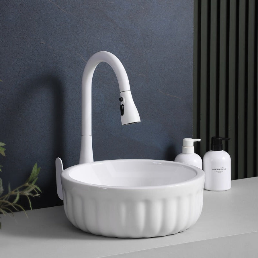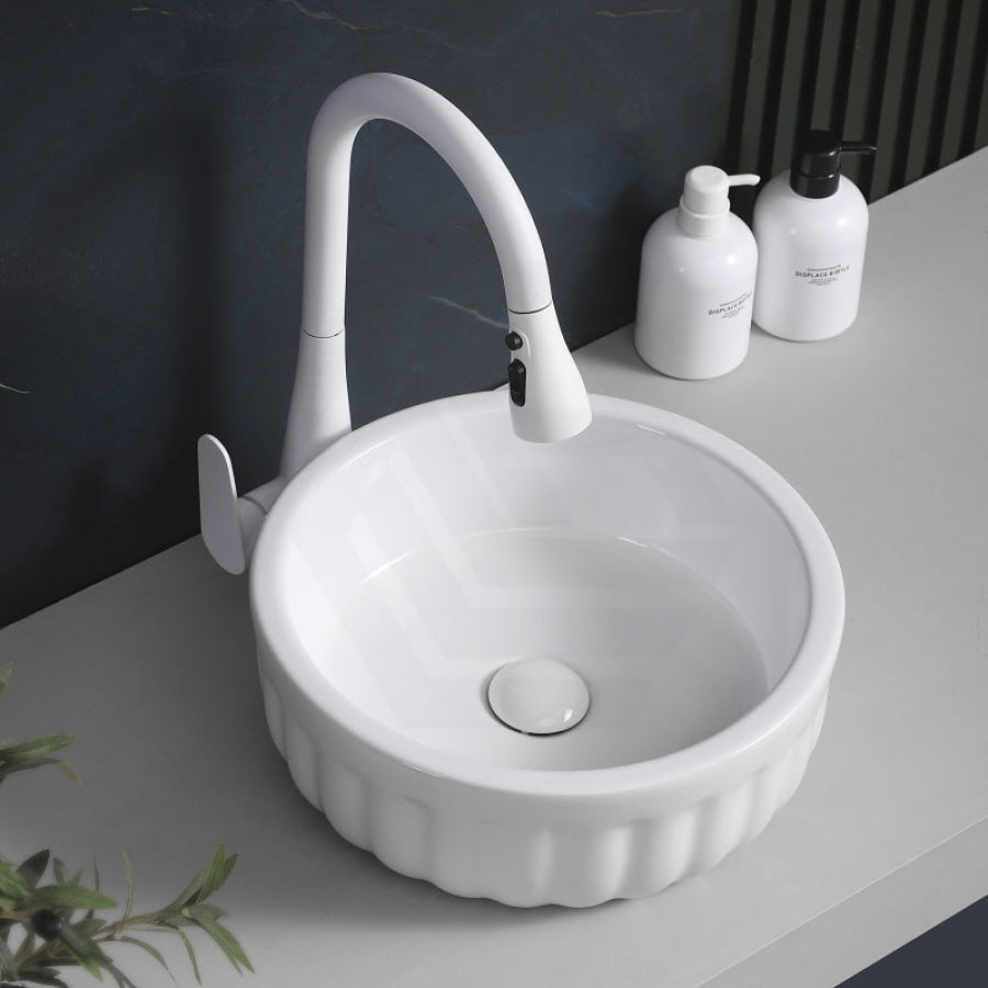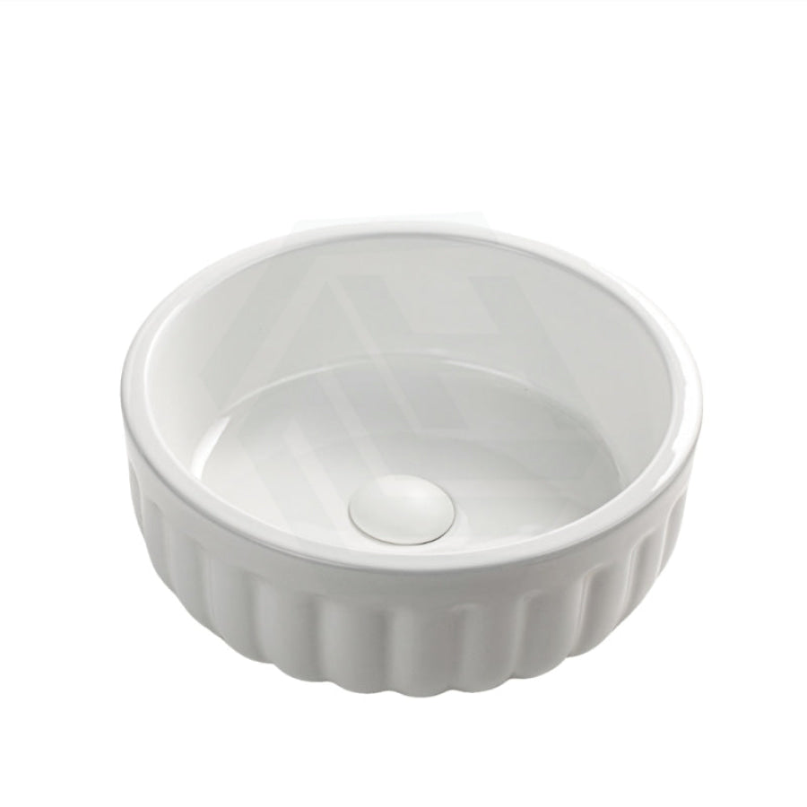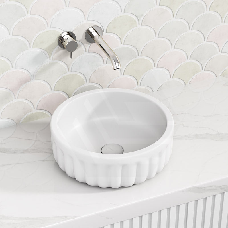 385x385x135mm Round Fluted Above Counter Basin Ceramic Gloss / Matt White
