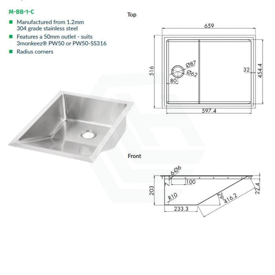 3Monkeez 1.2mm Stainless Steel Sink for Baby Bath
