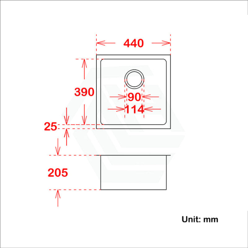 Discover the Round Corner Single Bowl Kitchen and Laundry Sink, expertly crafted from 304 Stainless Steel for lasting durability and a sleek satin coated finish, available in elegant Brushed Gold or Gunmetal Grey. This sink features a compact overall size of 440x440x205mm with a generous 35L capacity bowl measuring 390x390mm, ideal for efficient kitchen or laundry use.