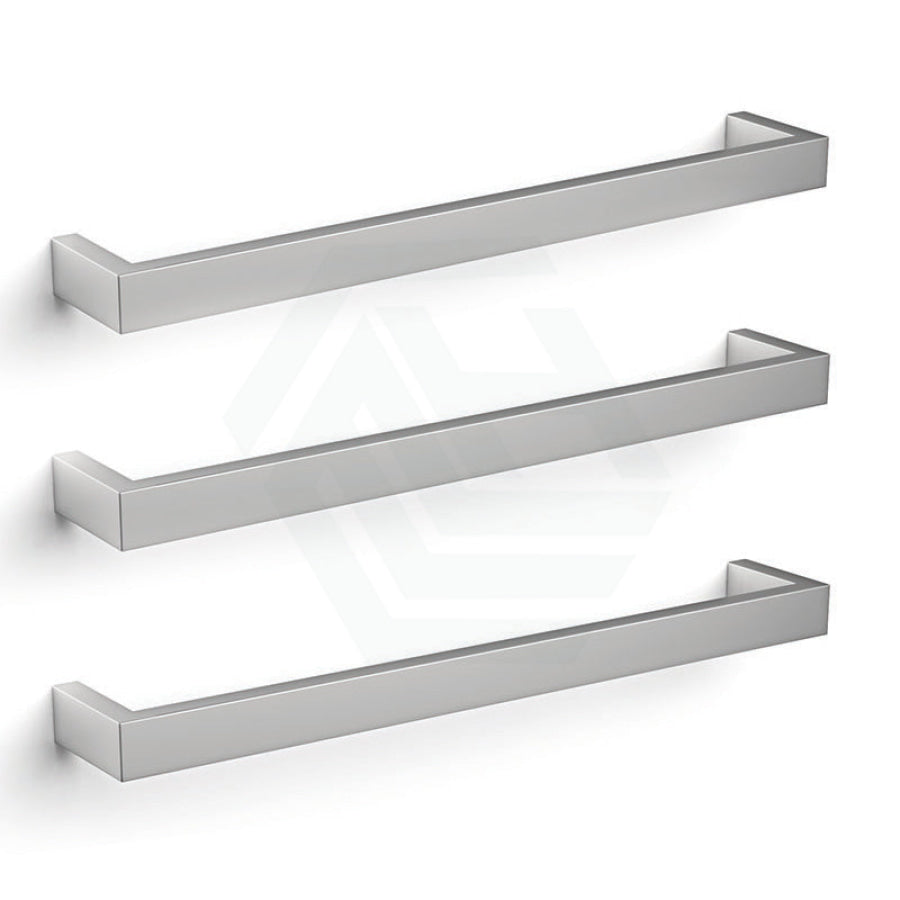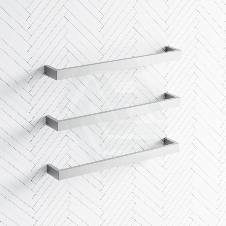 450/630/830mm ThermoGroup 12V Square 3 Single Bar Heated Towel Rail Polished Stainless Steel