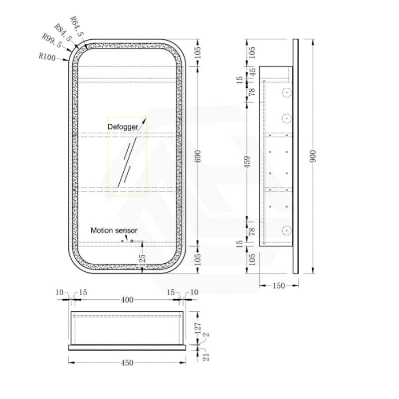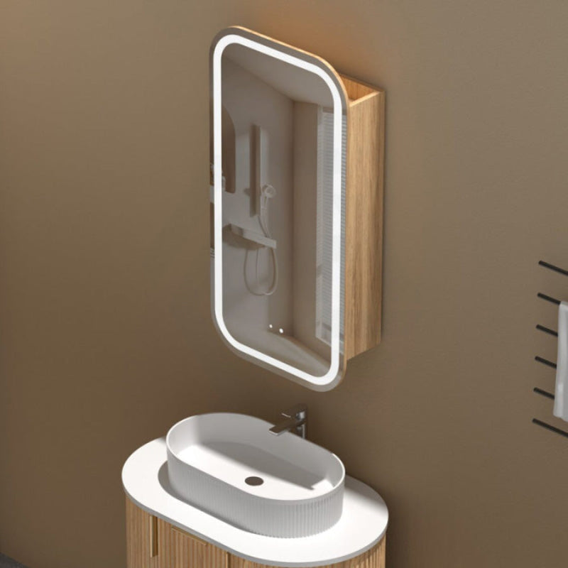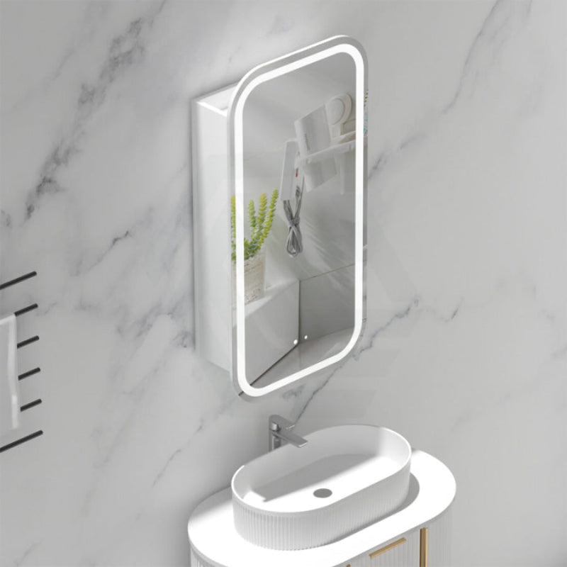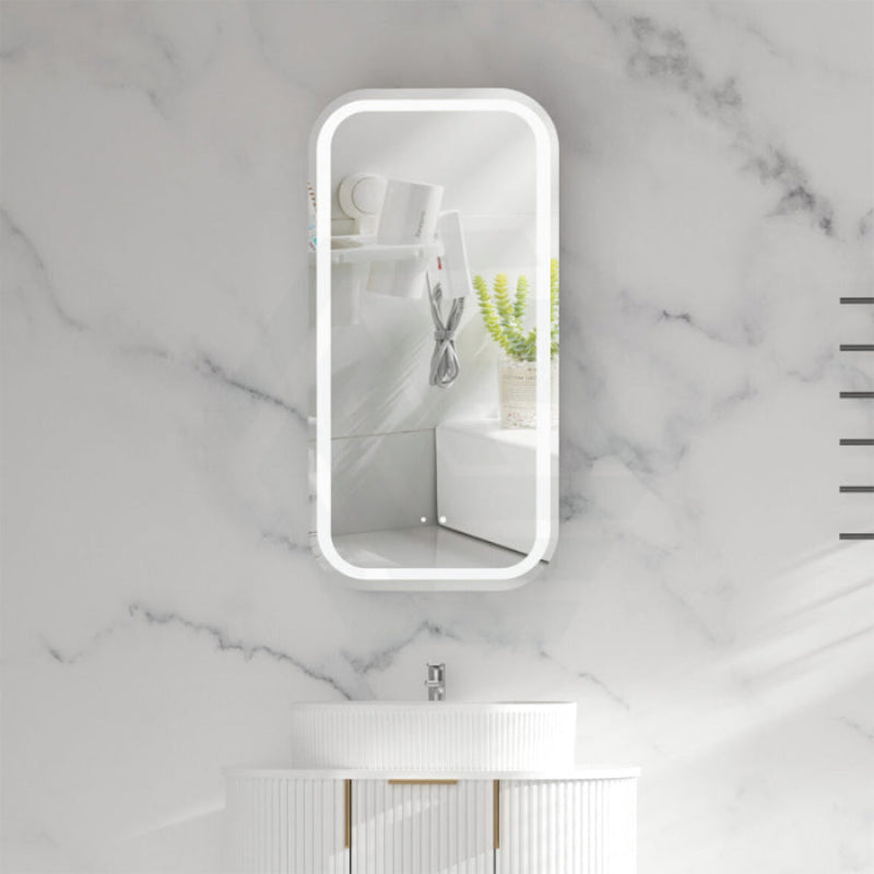 450x900mm Carysil Plywood Wall Hung Squircle Motion Sensor LED Shaving Mirror Cabinet Matt White/Walnut Finish for Bathroom