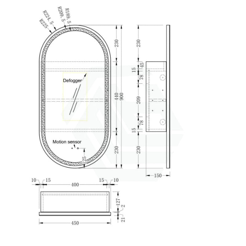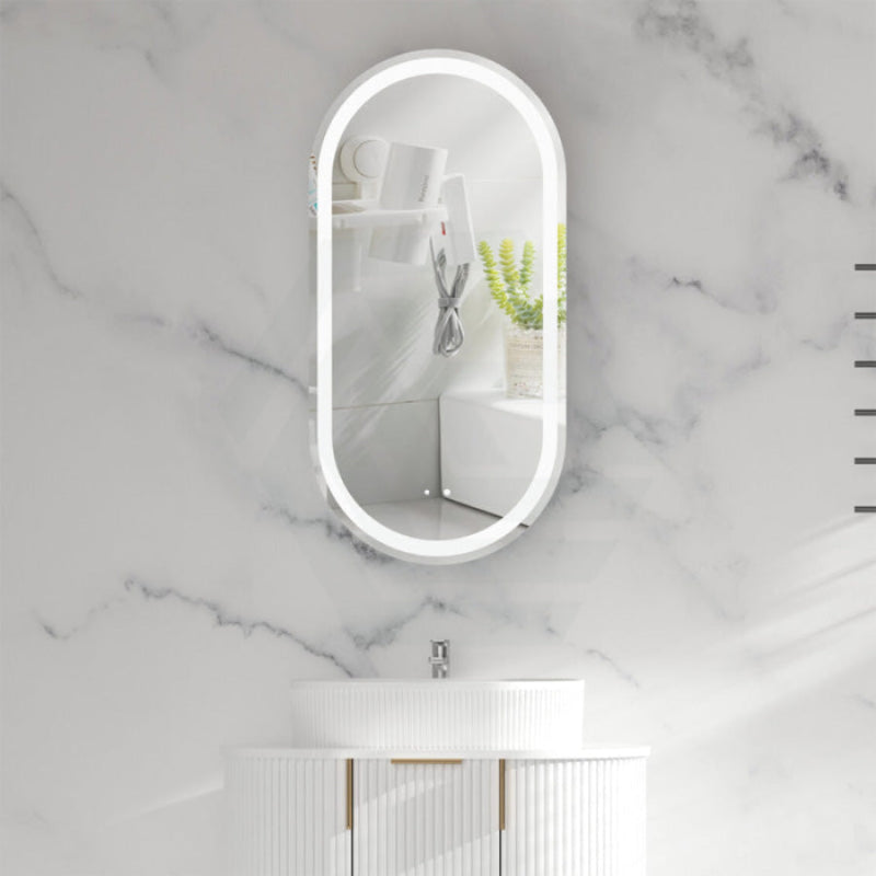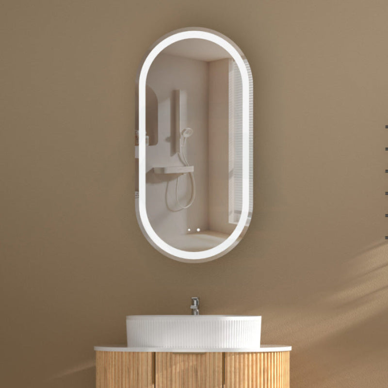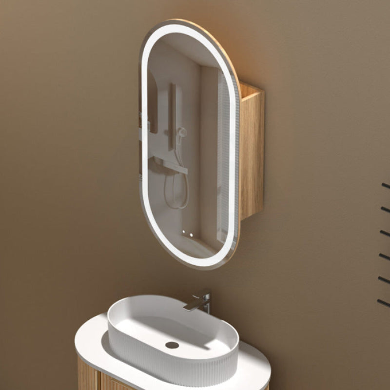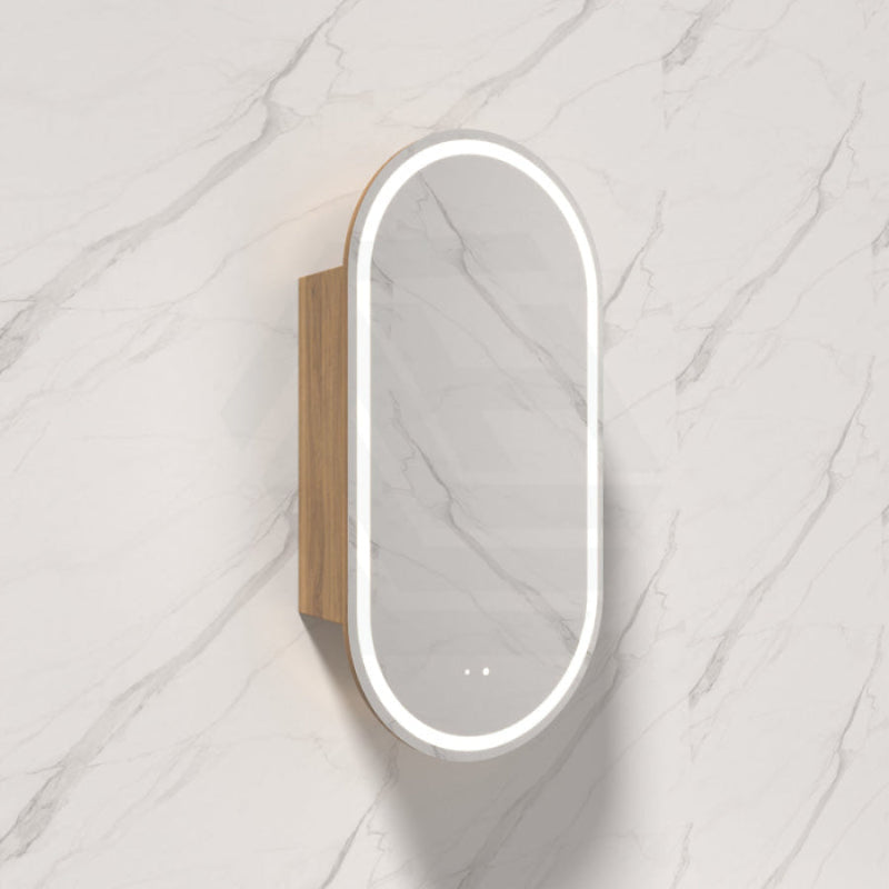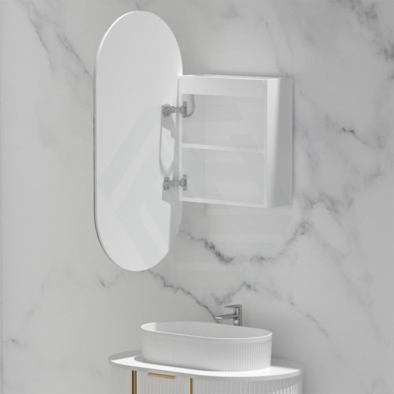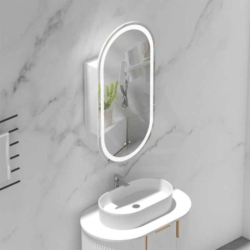 450x900mm Carysil Plywood Wall Hung Oval Motion Sensor LED Shaving Mirror Cabinet Matt White/Walnut for Bathroom