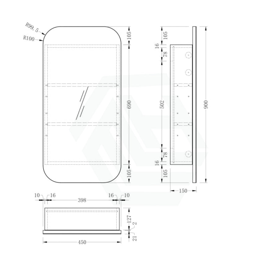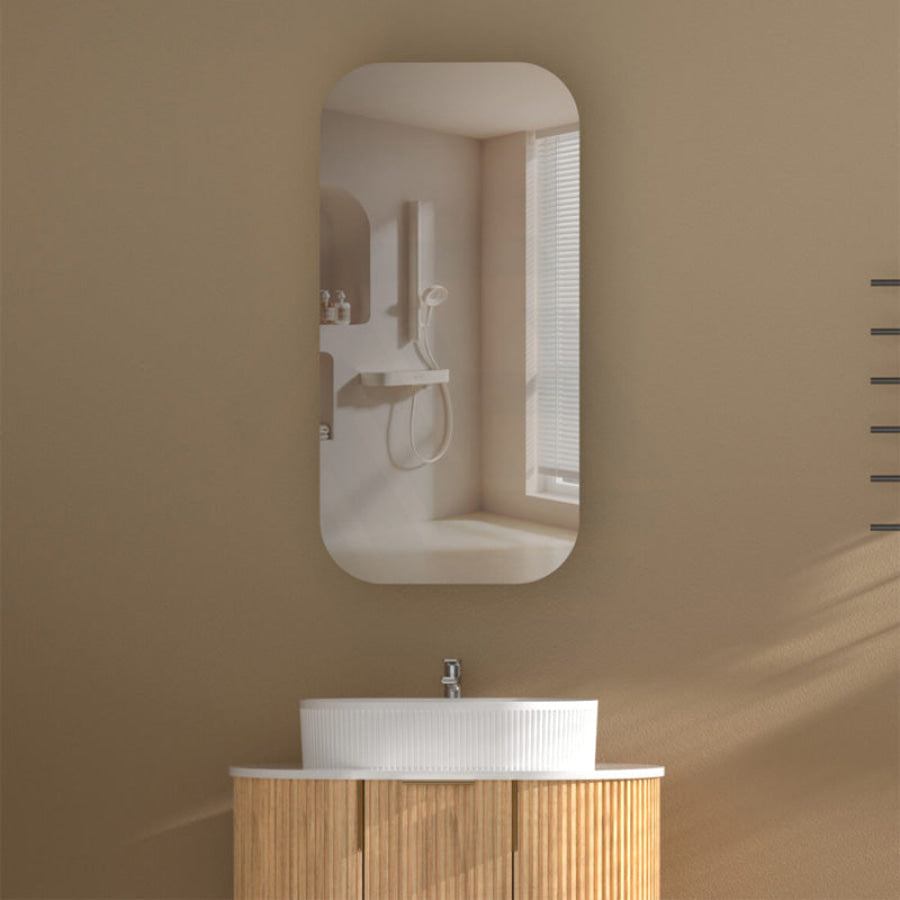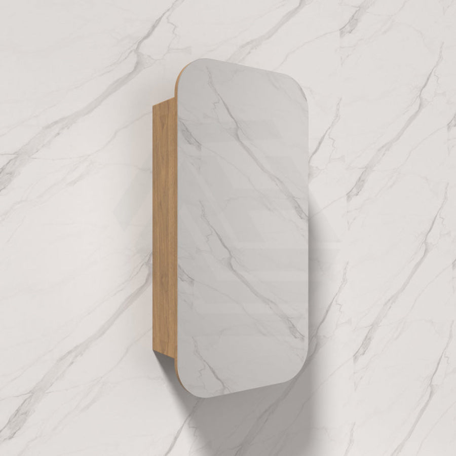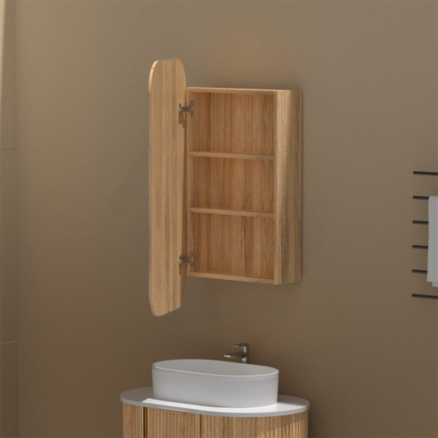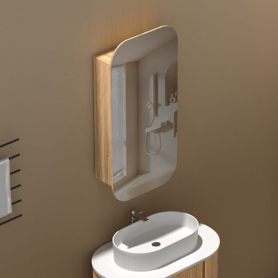 450x900mm Carysil Plywood Wall Hung Squircle Shaving Mirror Cabinet Walnut Finish for Bathroom