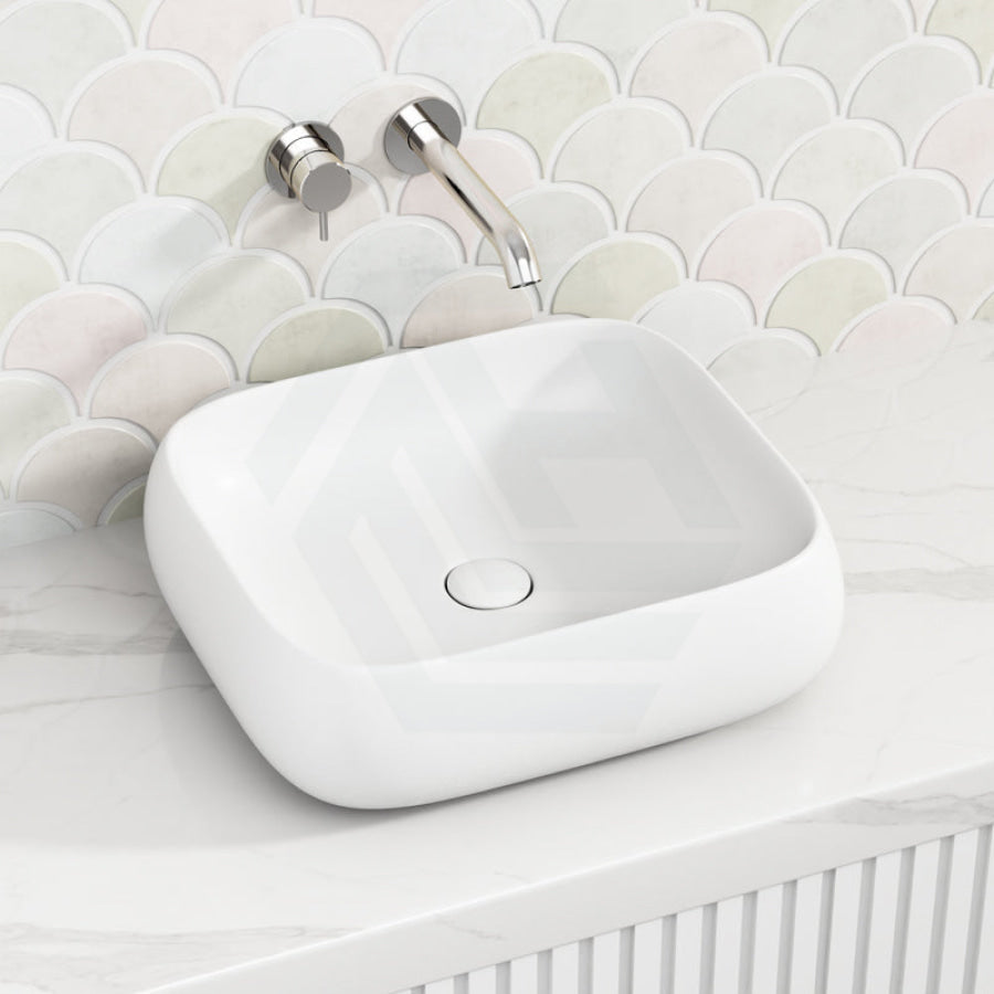 450x400x145mm Rectangle Above Counter Matt White Ceramic Basin Ultra Slim