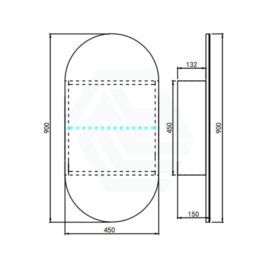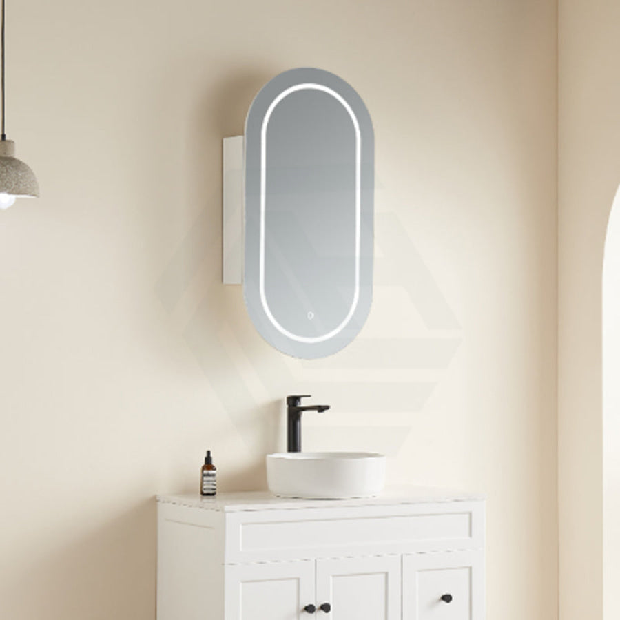 450x900x150mm Ceto Olivia Matt White Oval LED Shaving Cabinet Frontlit