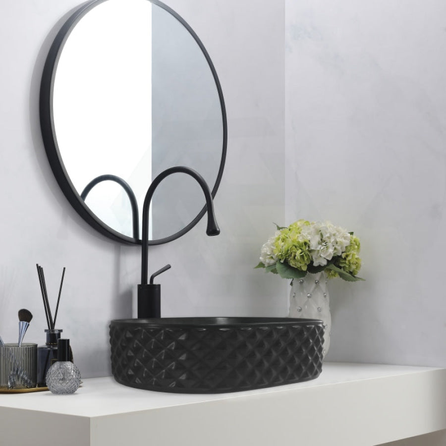 450X330X130Mm Oval Matt Black Above Counter Basin Ceramic Basins