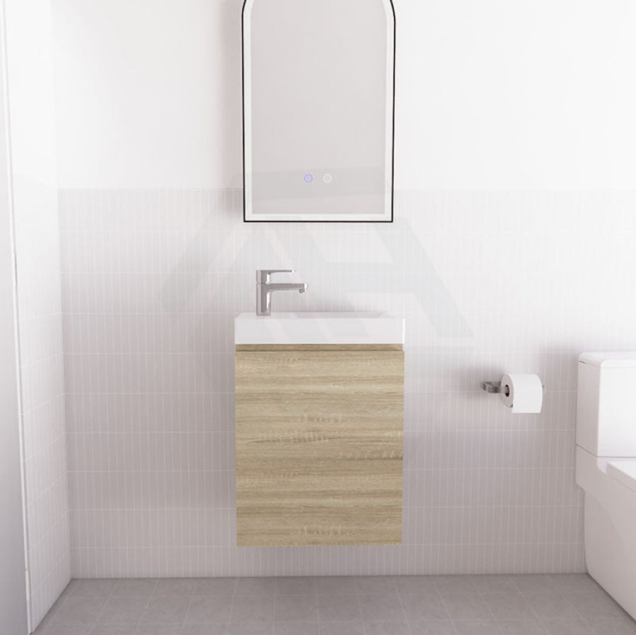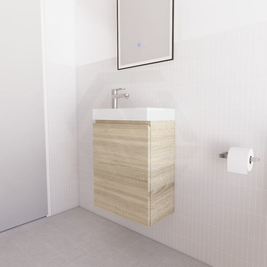 450x250x550mm Wall Hung Narrow Bathroom Vanity with Overflow Poly Top Light Oak MDF