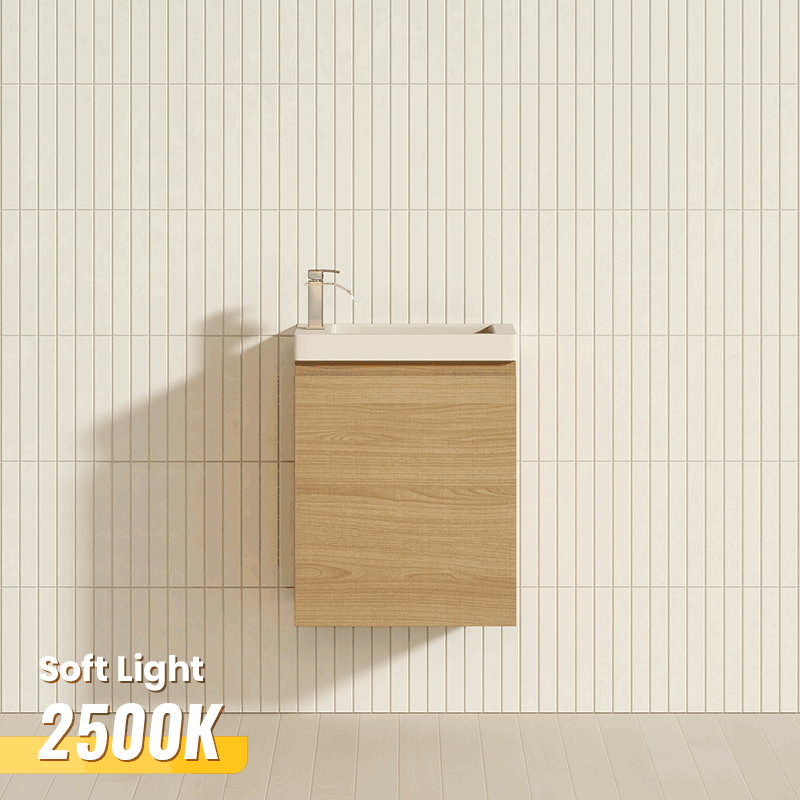 The 450x250x550mm Wall Hung Narrow Bathroom Vanity with Poly Top Light Oak MDF brings comfort and function together in the bathroom, equipped with soft closing design.