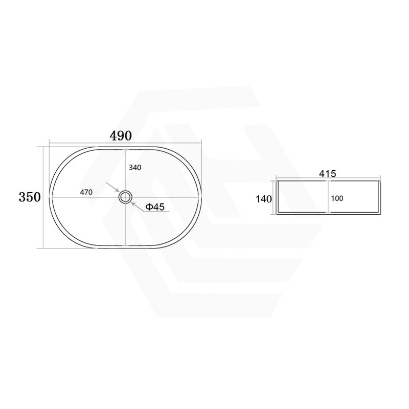 Lukka 490x350x140mm Oval Matt White Above Counter Ceramic Basin