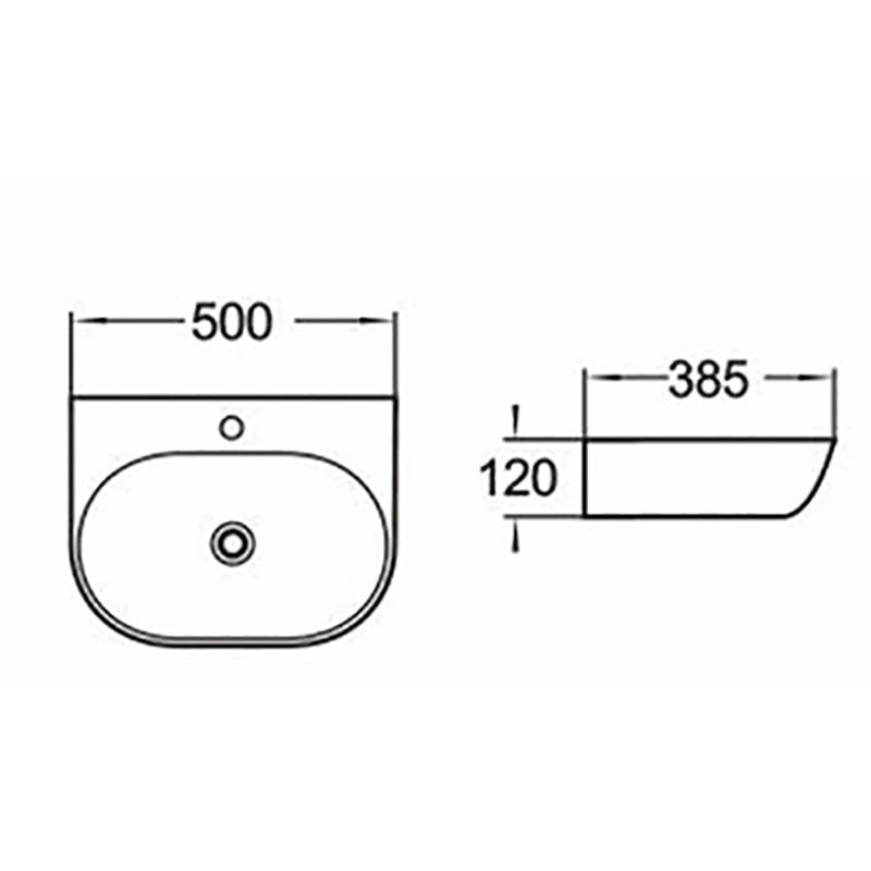 500x385x120mm Oval Gloss White Wall Hung Ceramic Basin