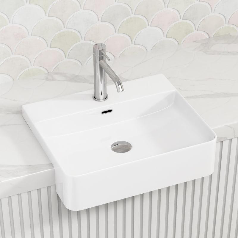 The 505x420x130mm Rectangle Gloss White Semi Recessed Ceramic Basin One Tap Hole would give a high-quality and elegant addition to any bathroom.