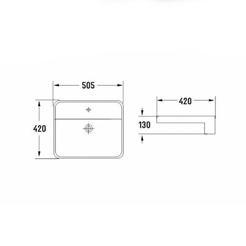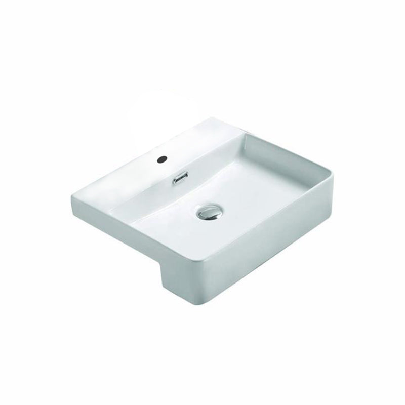 505x420x130mm Rectangle Gloss White Semi Recessed Ceramic Basin