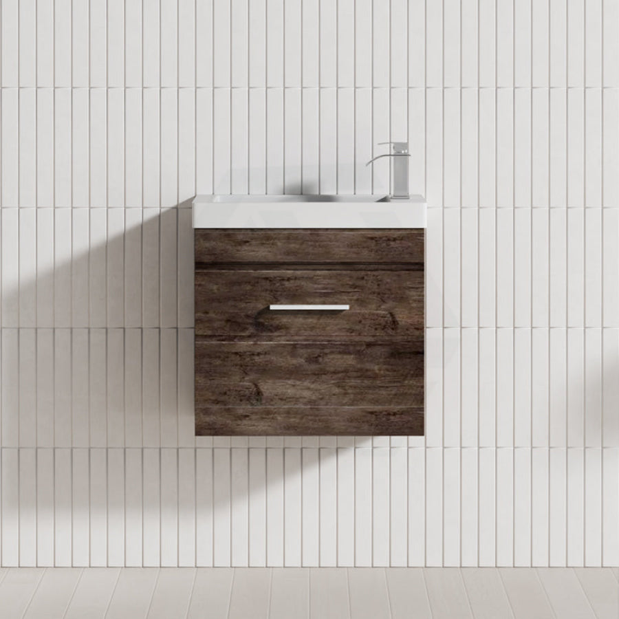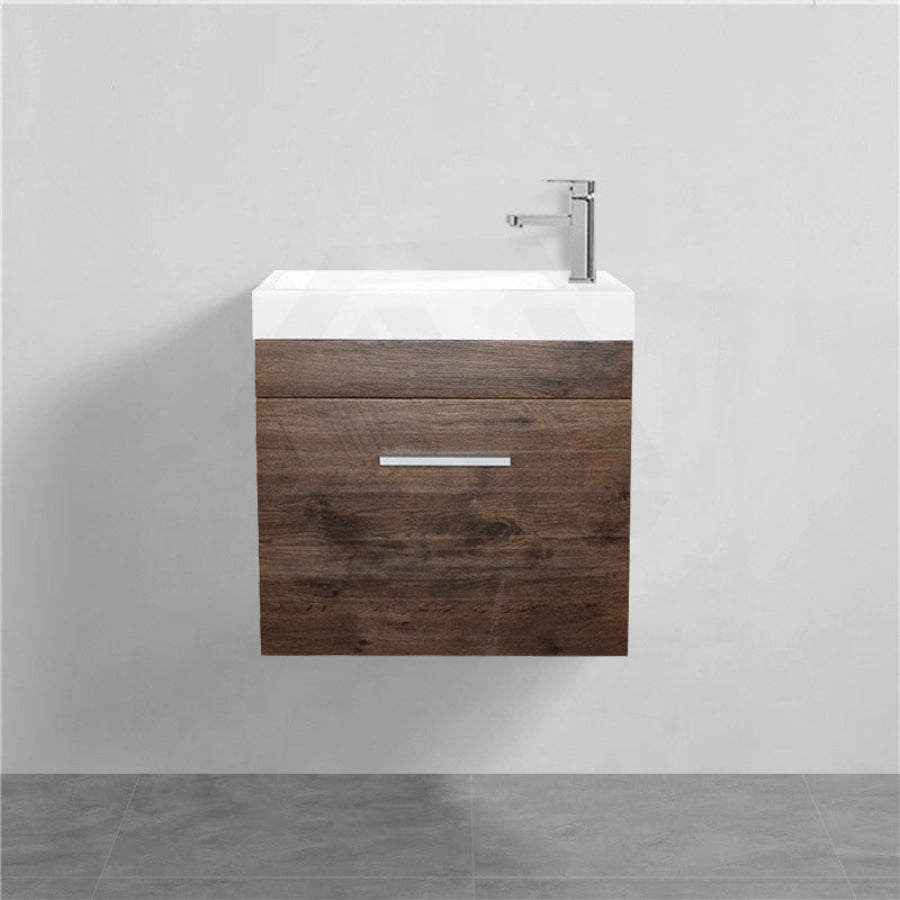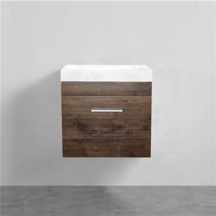 500x250x520mm Wall Hung Bathroom Floating Vanity with Ceramic Top DARK Oak Wood Grain One Tap Hole