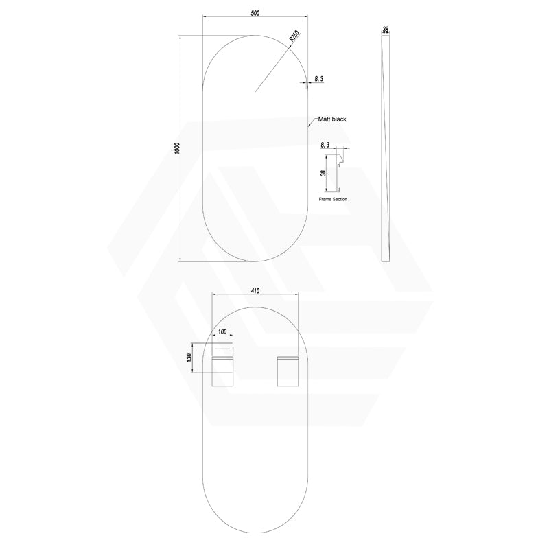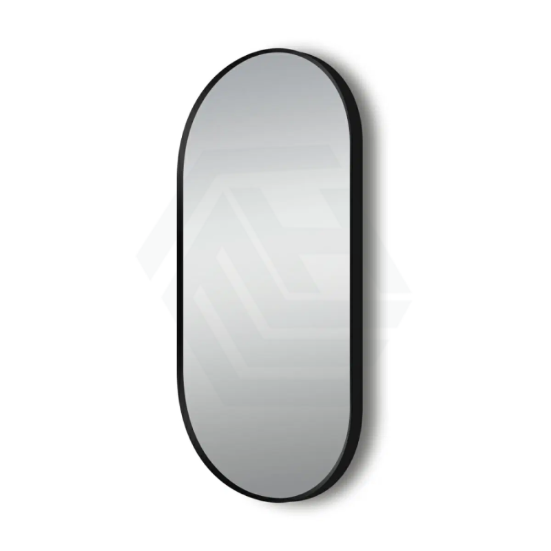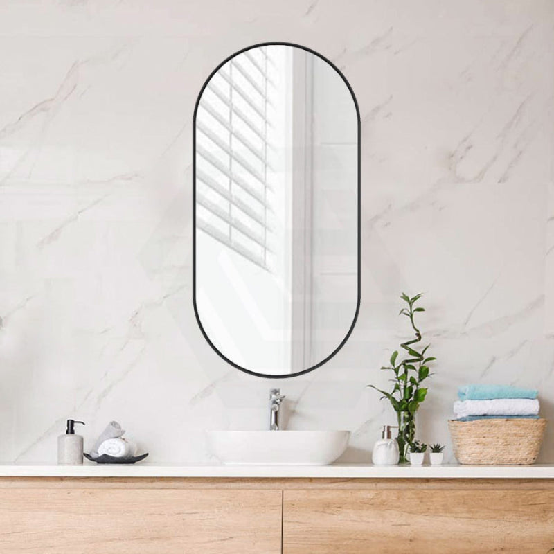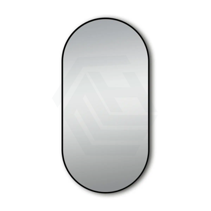 500x1000mm Lamex Aluminum Oval Framed Wall Mirror Matt Black/Brushed Gold Vertical Installation