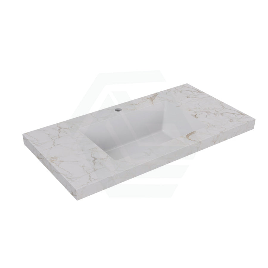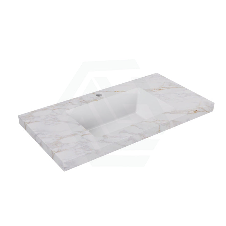 Expertly crafted with precision and style, our 50mm Thick Lukka Carrara Gold Sintered Stone seamlessly joins with a fine ceramic basin for a sleek and sophisticated look. Enjoy the benefits of durable and low-maintenance materials that will elevate any bathroom.