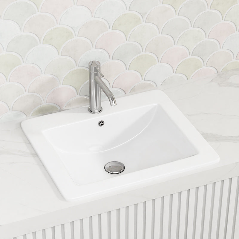 Lukka 530x460x180mm Inset Ceramic Basin Square Gloss White with Tap Hole
