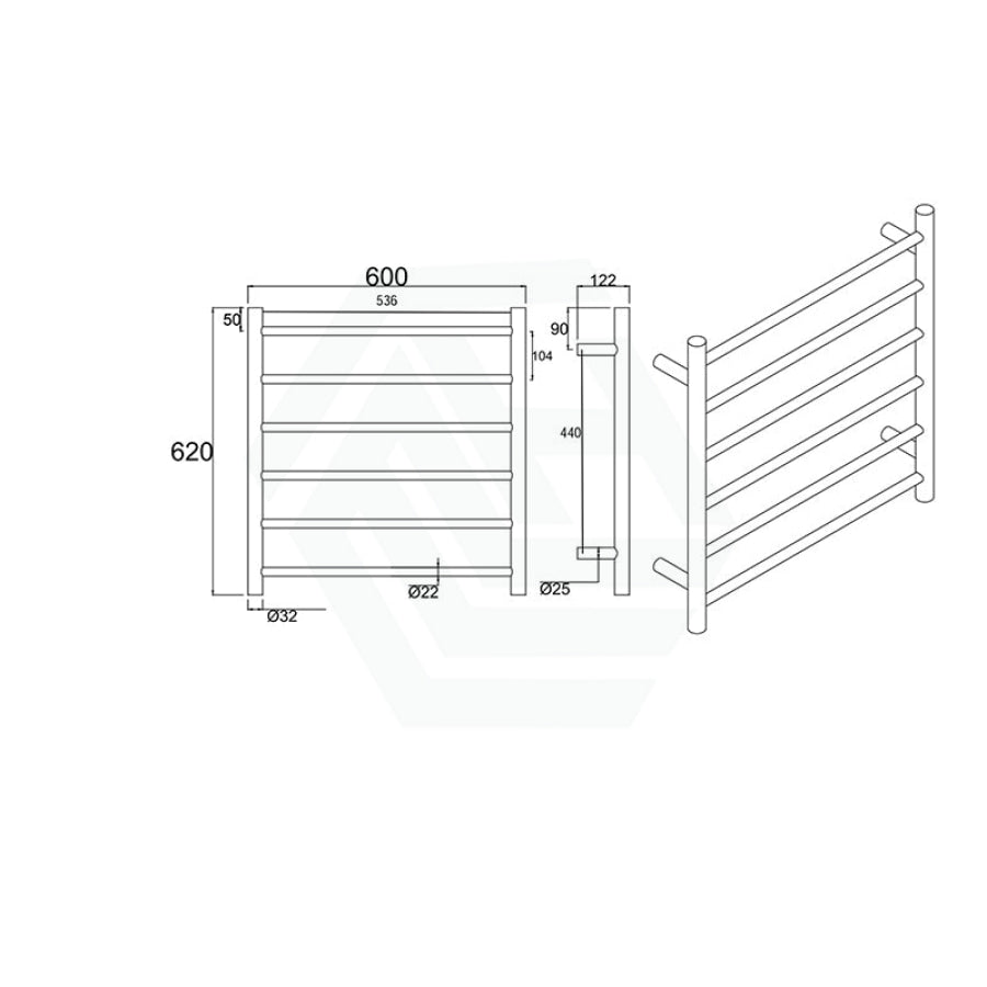 620x600x120mm Round Electric Heated Towel Rack 6 Bars Variant Colour Available