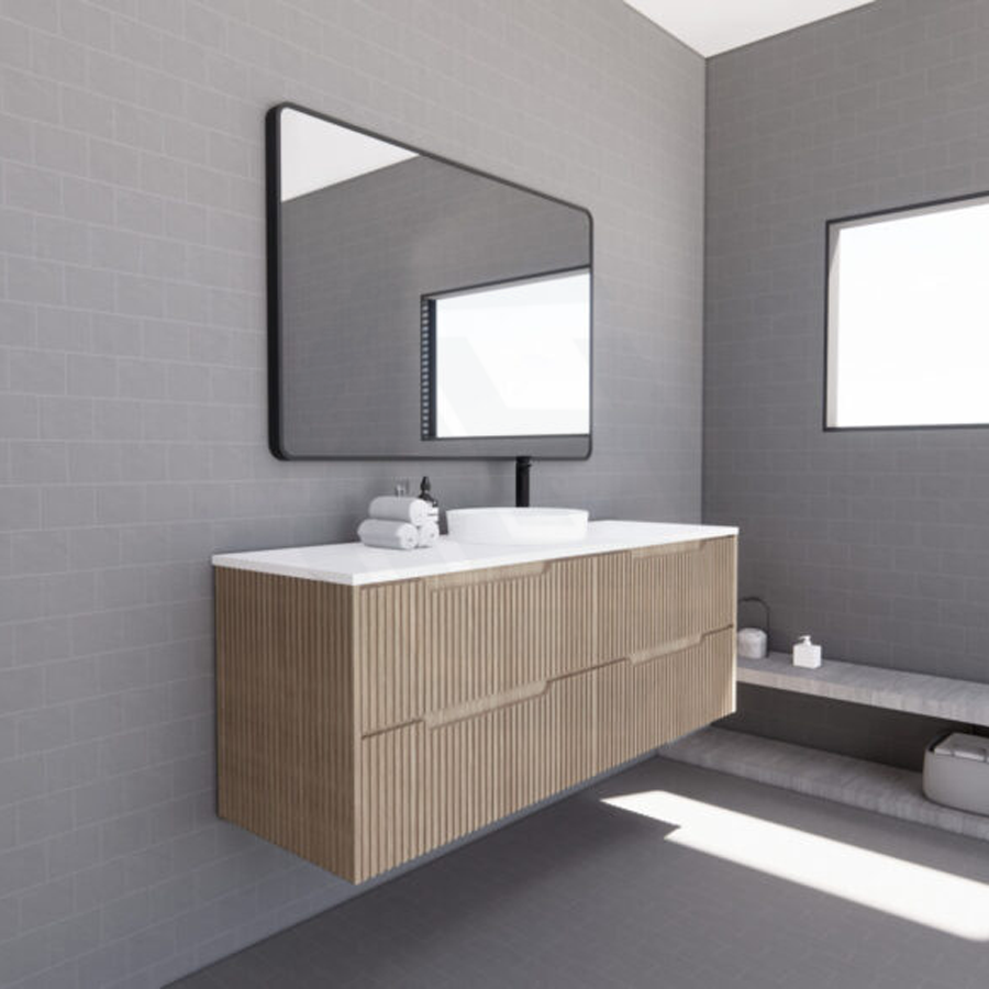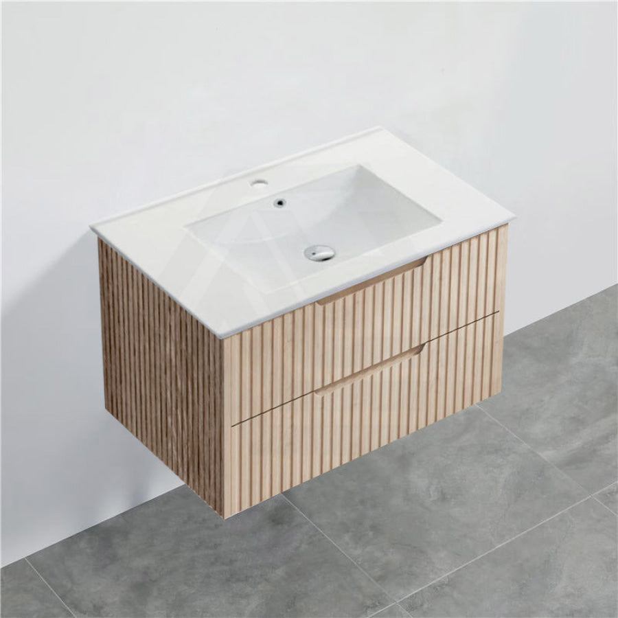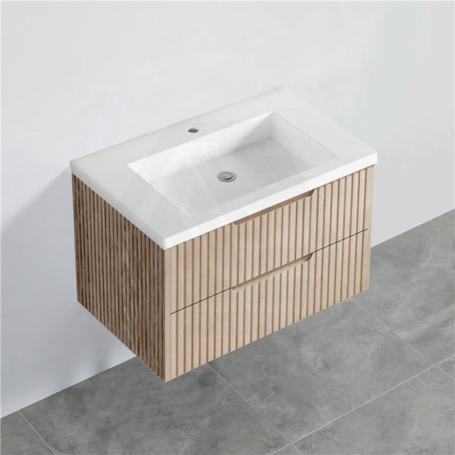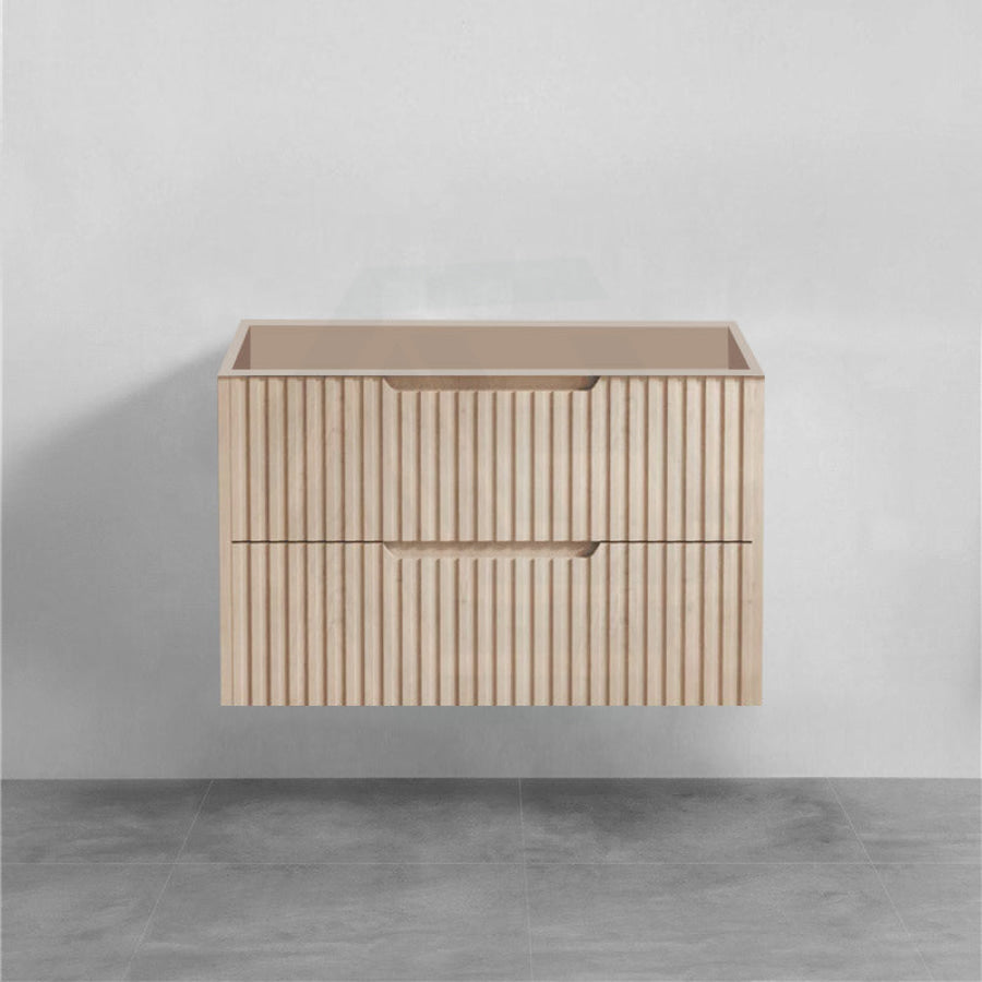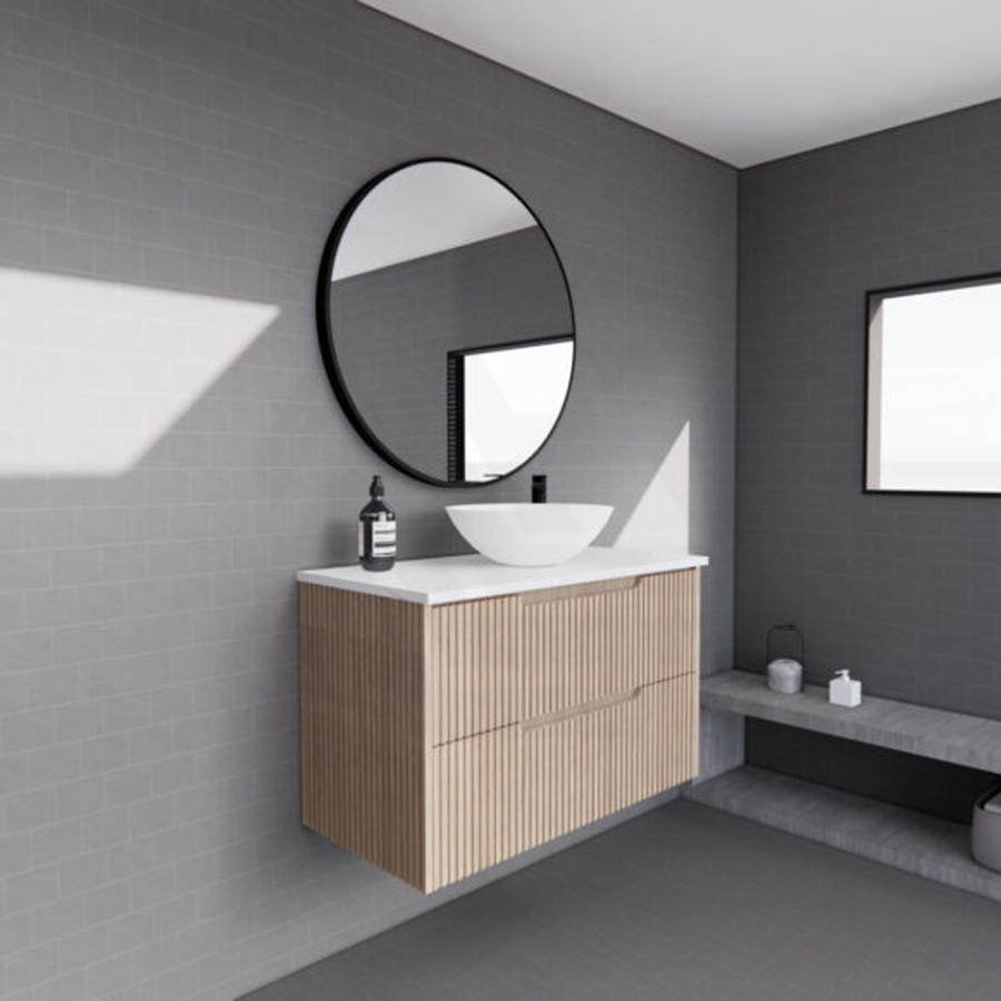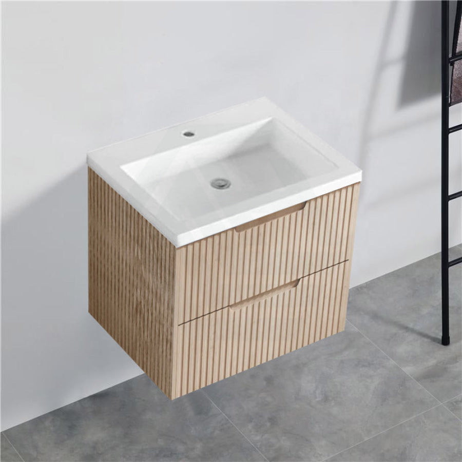 600-1500mm Bali Wall Hung Bathroom Floating Vanity American Oak Linear Fluted Cabinet PVC Coating