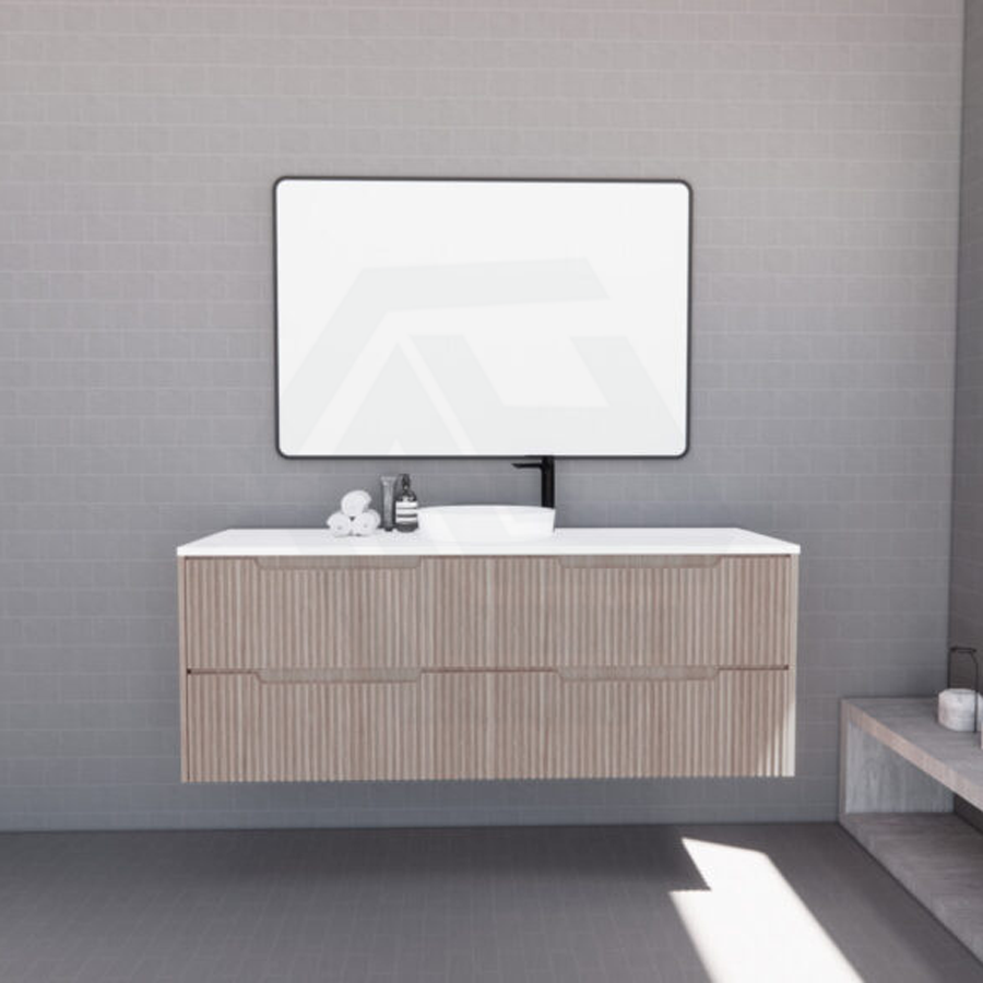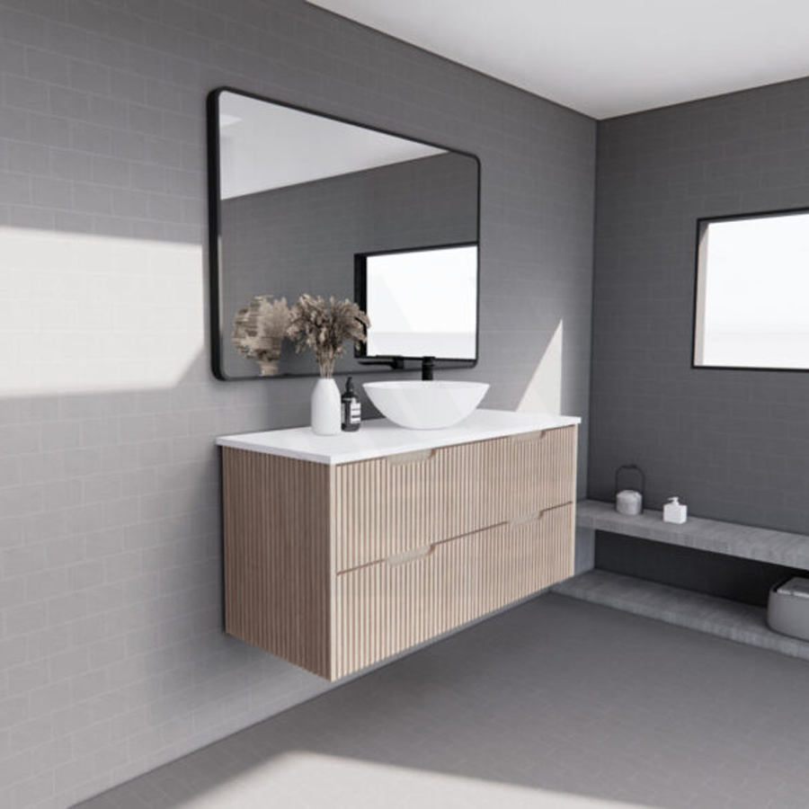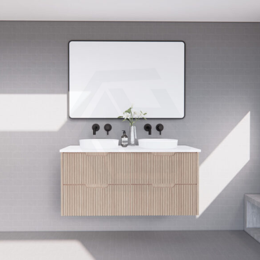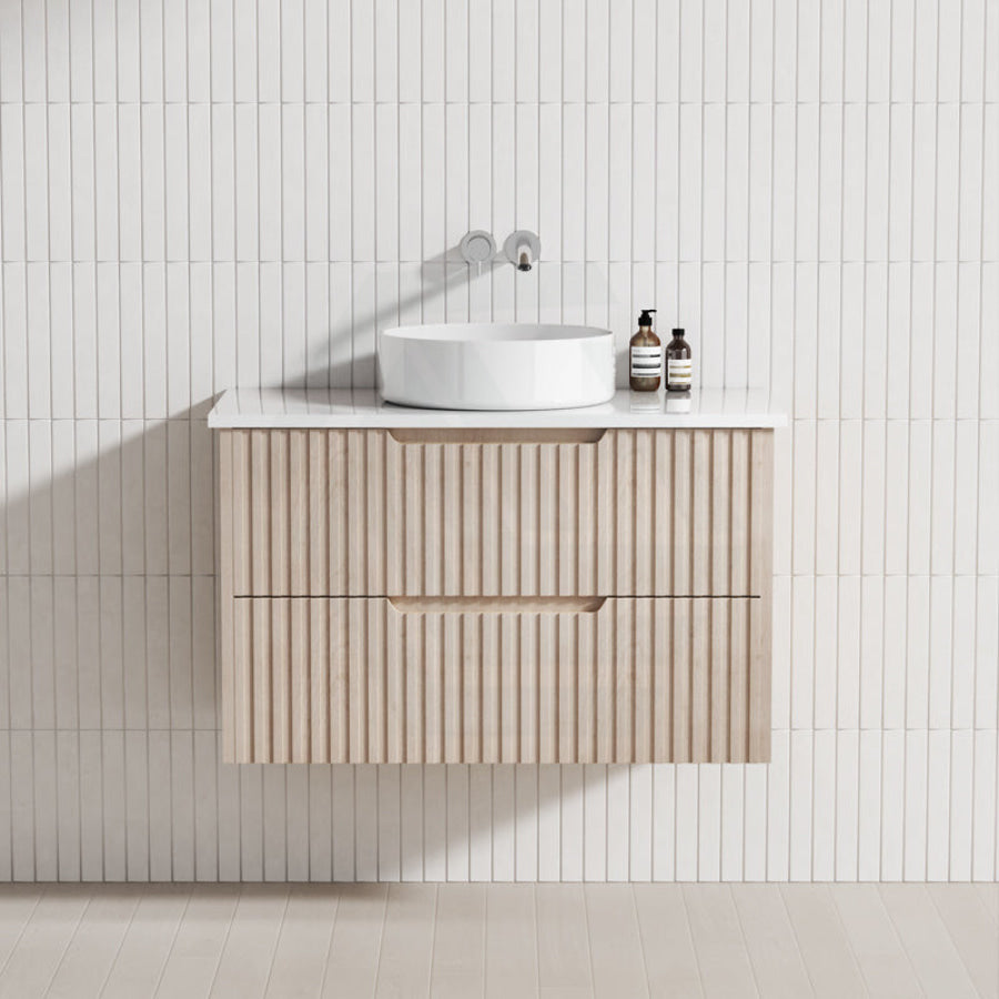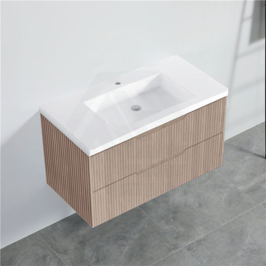 600-1500mm Bali Wall Hung Bathroom Floating Vanity American Oak Linear Fluted Cabinet PVC Coating