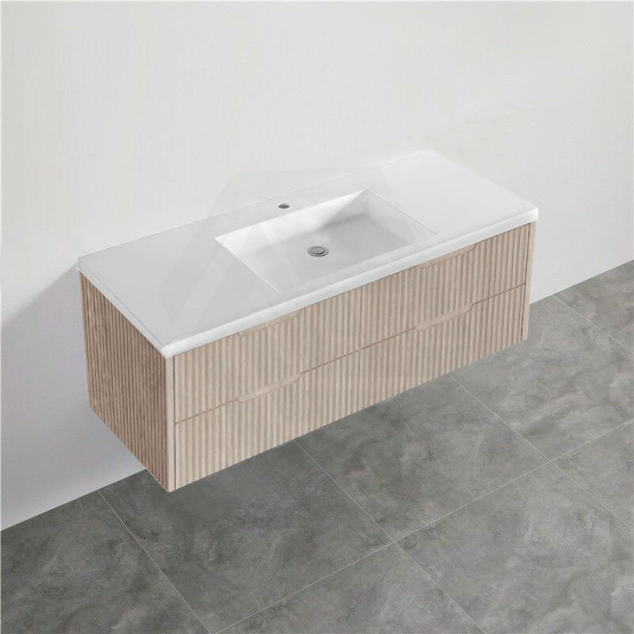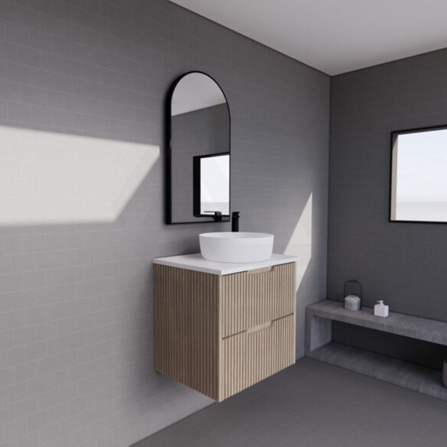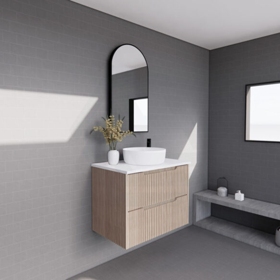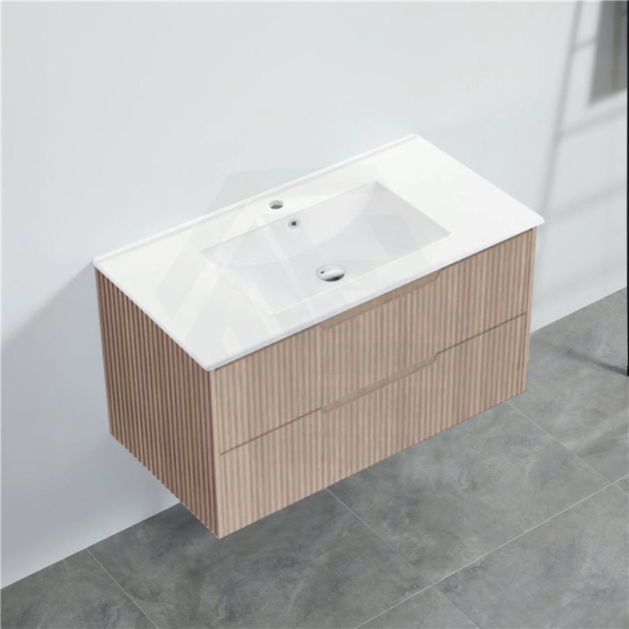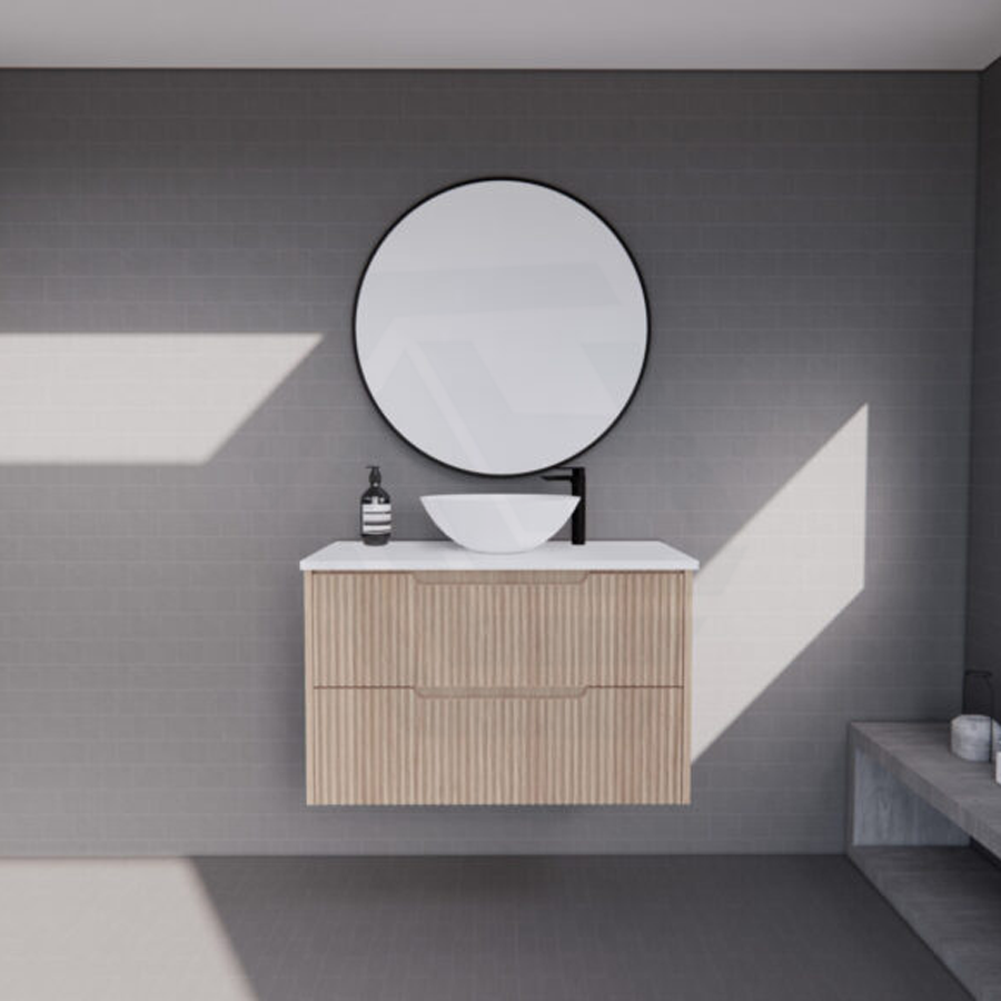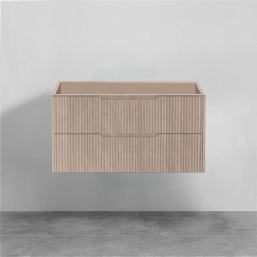 600-1500mm Bali Wall Hung Bathroom Floating Vanity American Oak Linear Fluted Cabinet PVC Coating