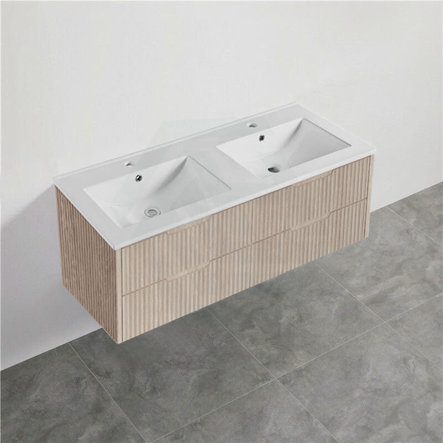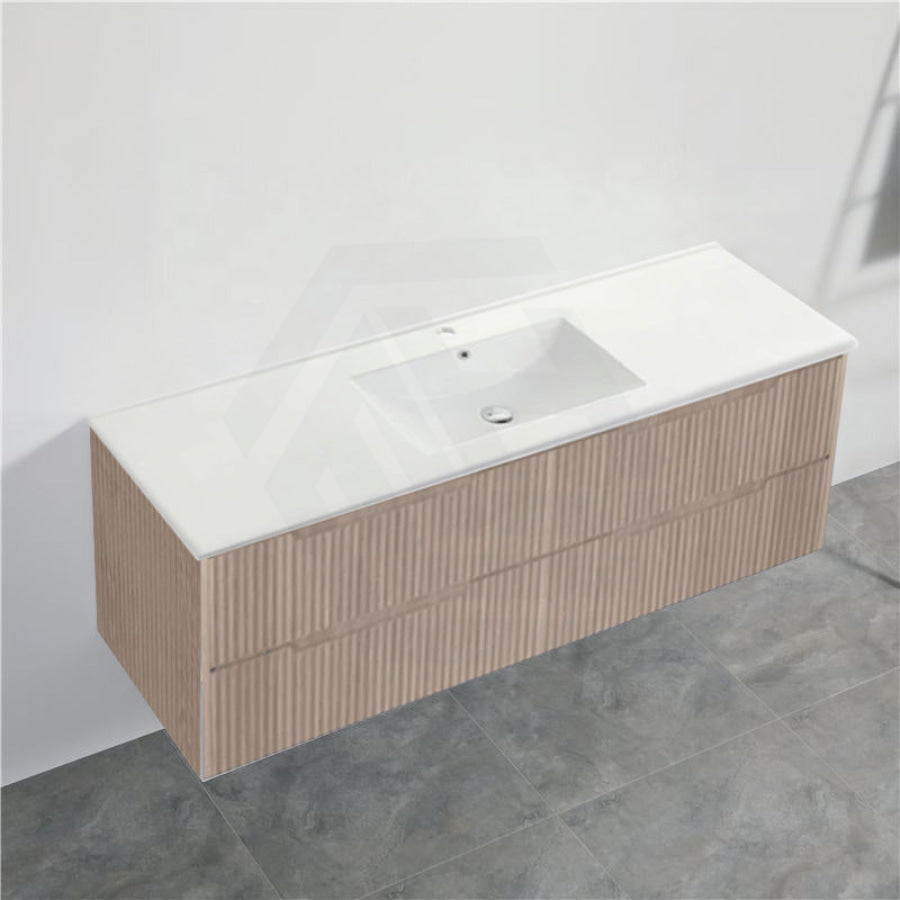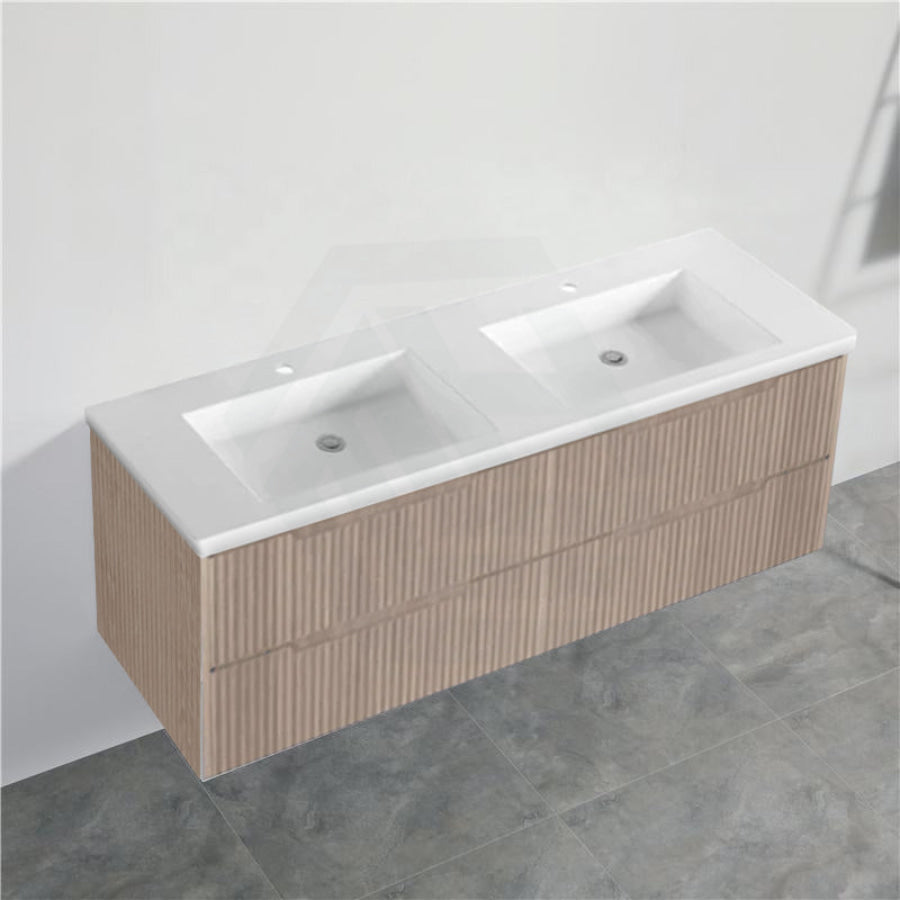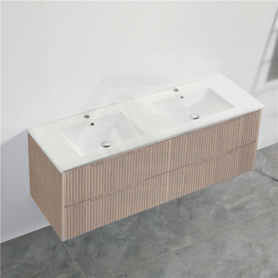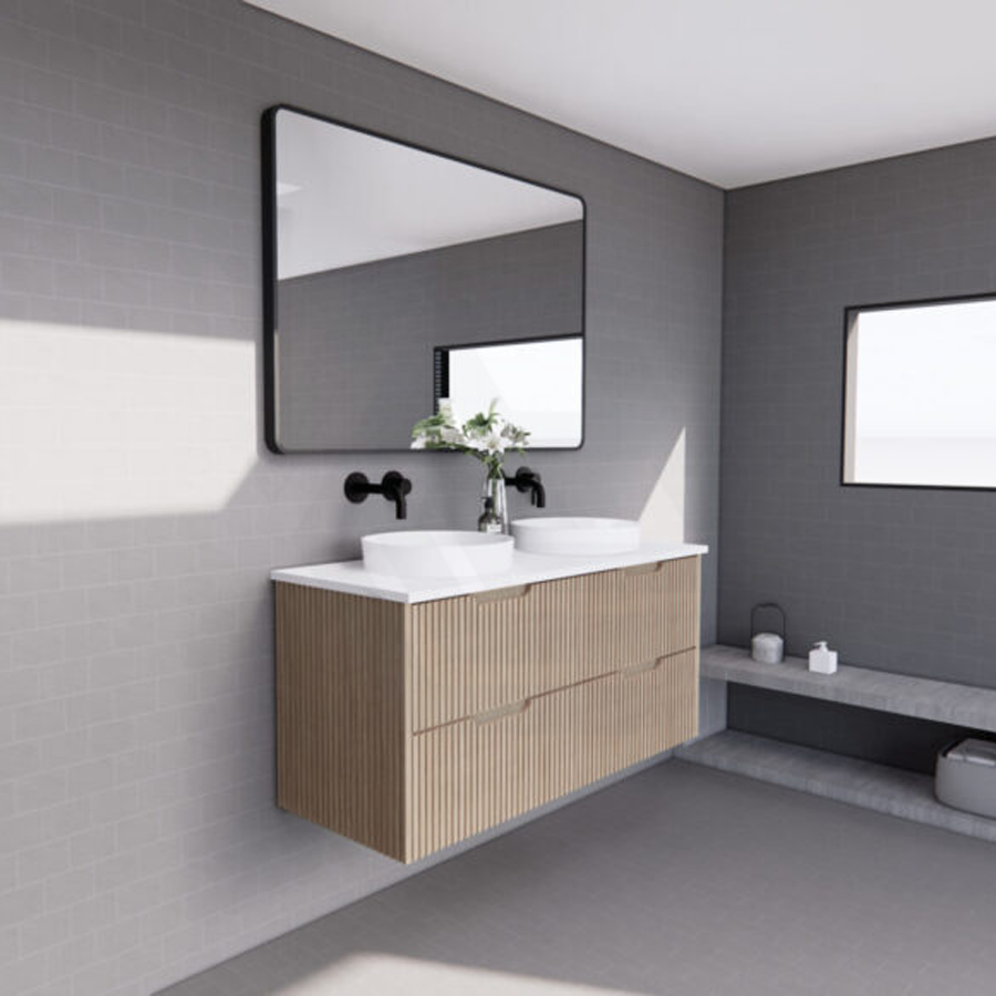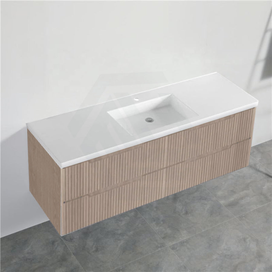 600-1500mm Bali Wall Hung Bathroom Floating Vanity American Oak Linear Fluted Cabinet PVC Coating
