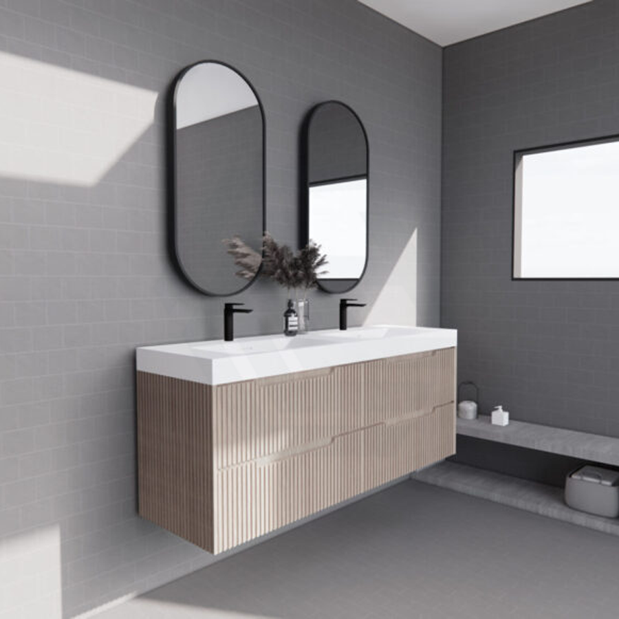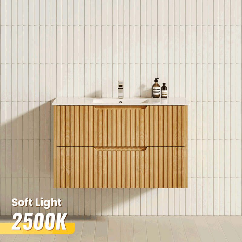 600-1500mm Bali Wall Hung Bathroom Floating Vanity American Oak Linear Fluted Cabinet PVC Coating brings comfort and function together in the bathroom, equipped with soft closing design.