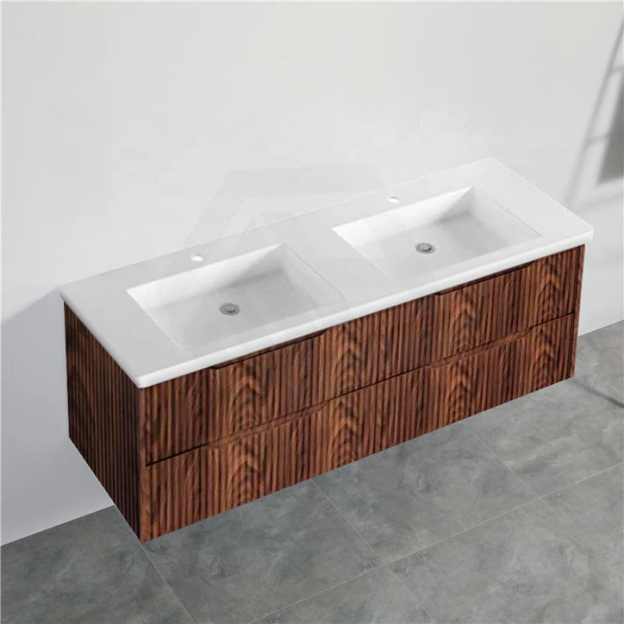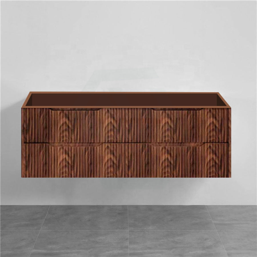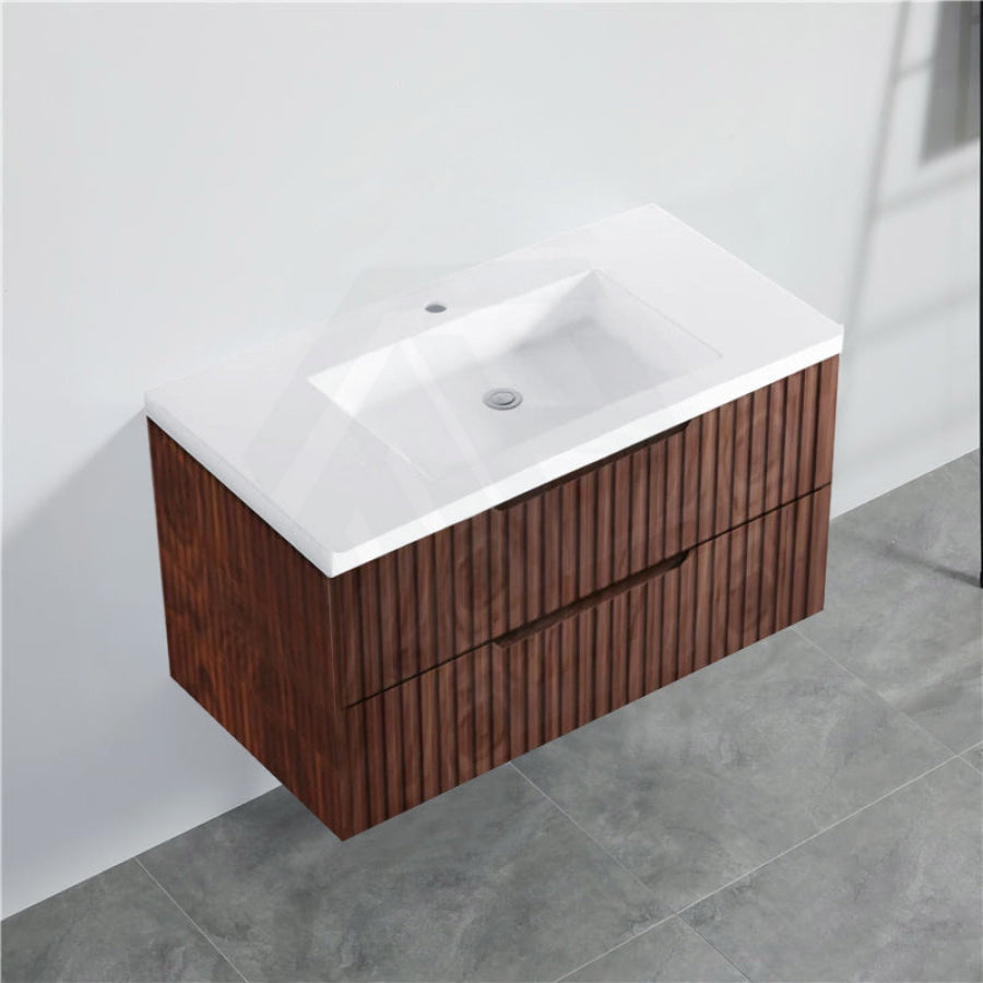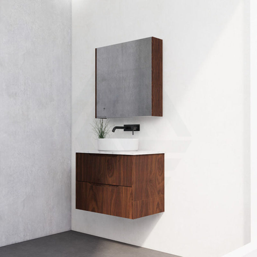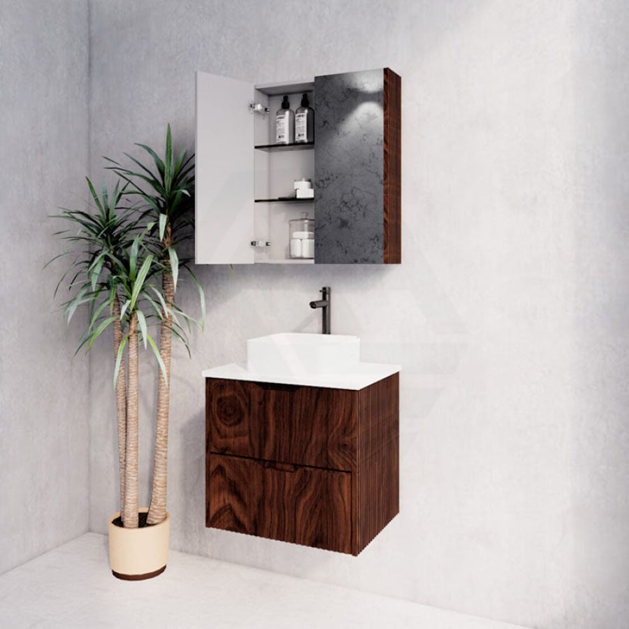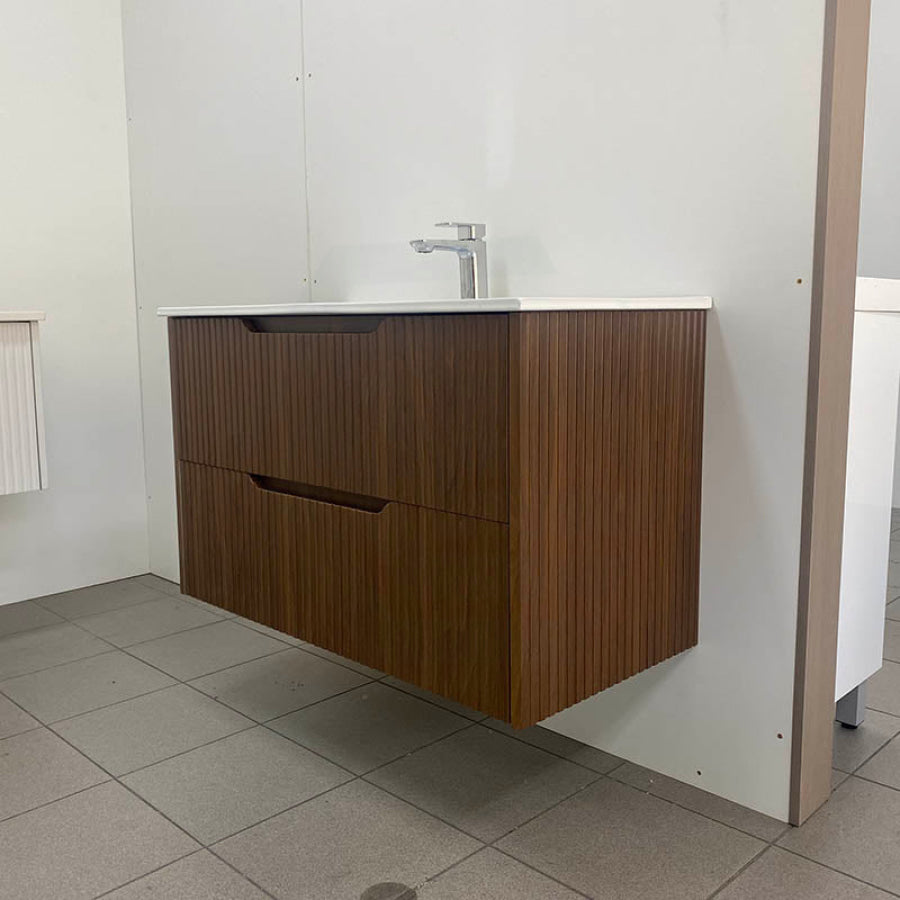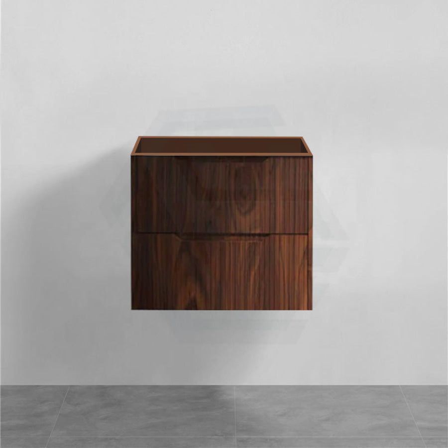 600-1500mm Bali Wall Hung Bathroom Floating Vanity Brown Oak Linear Fluted Cabinet PVC Coating