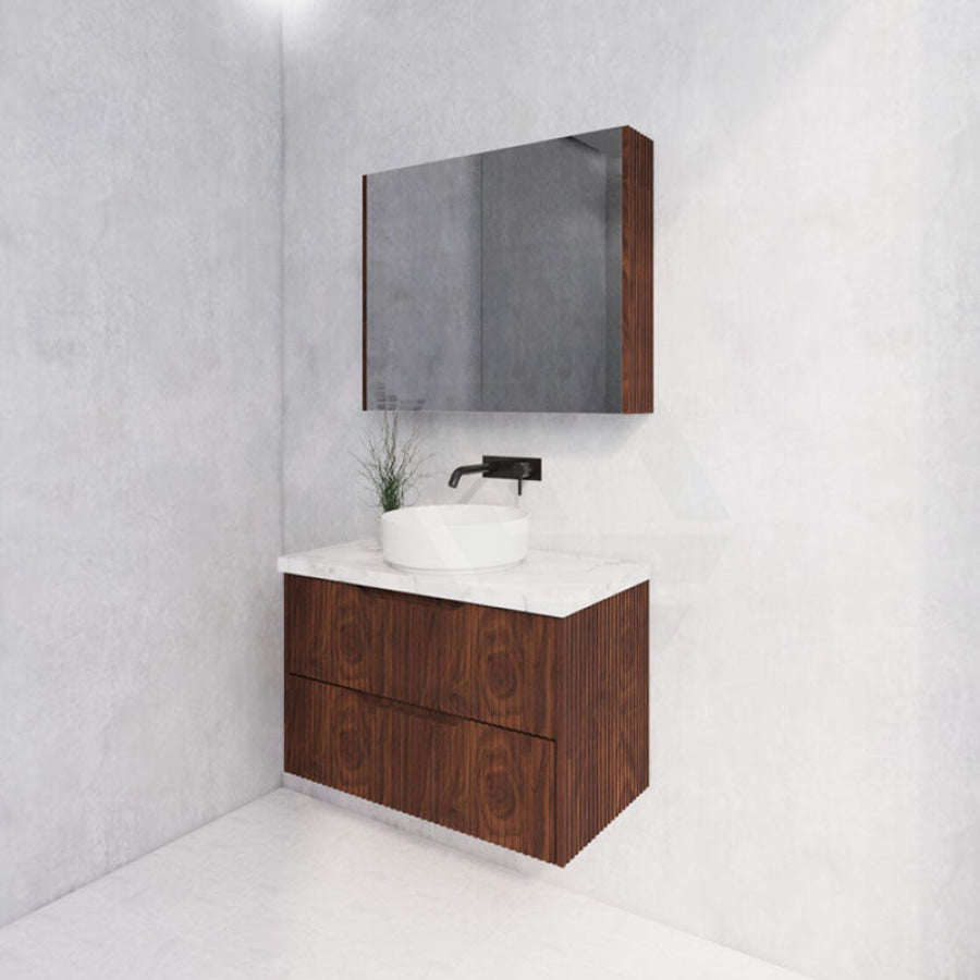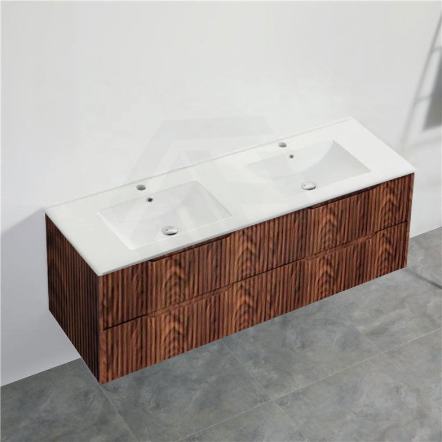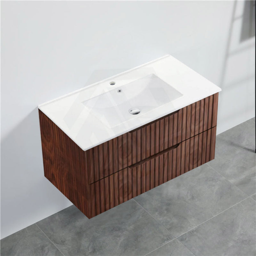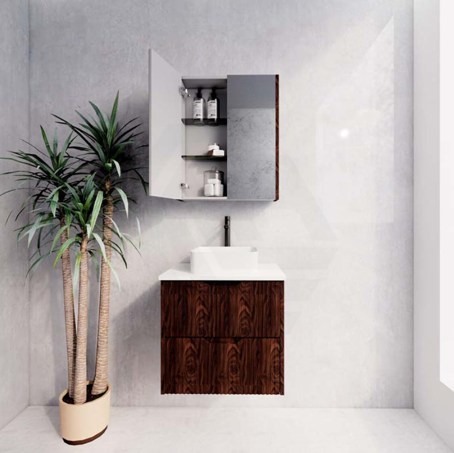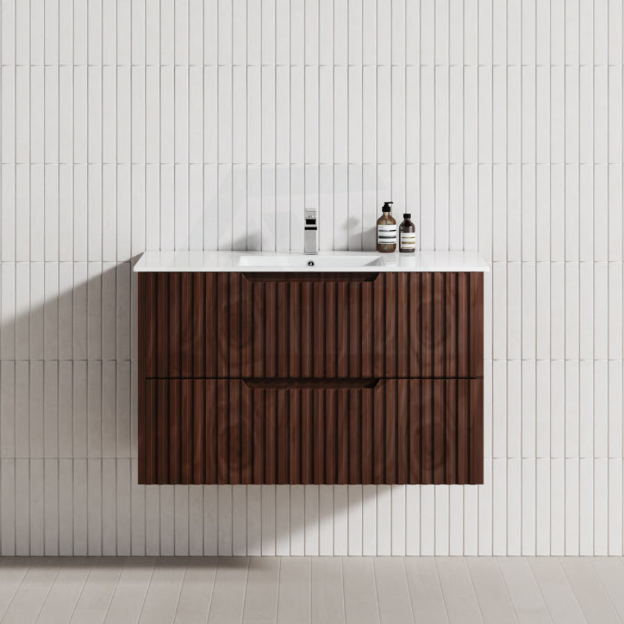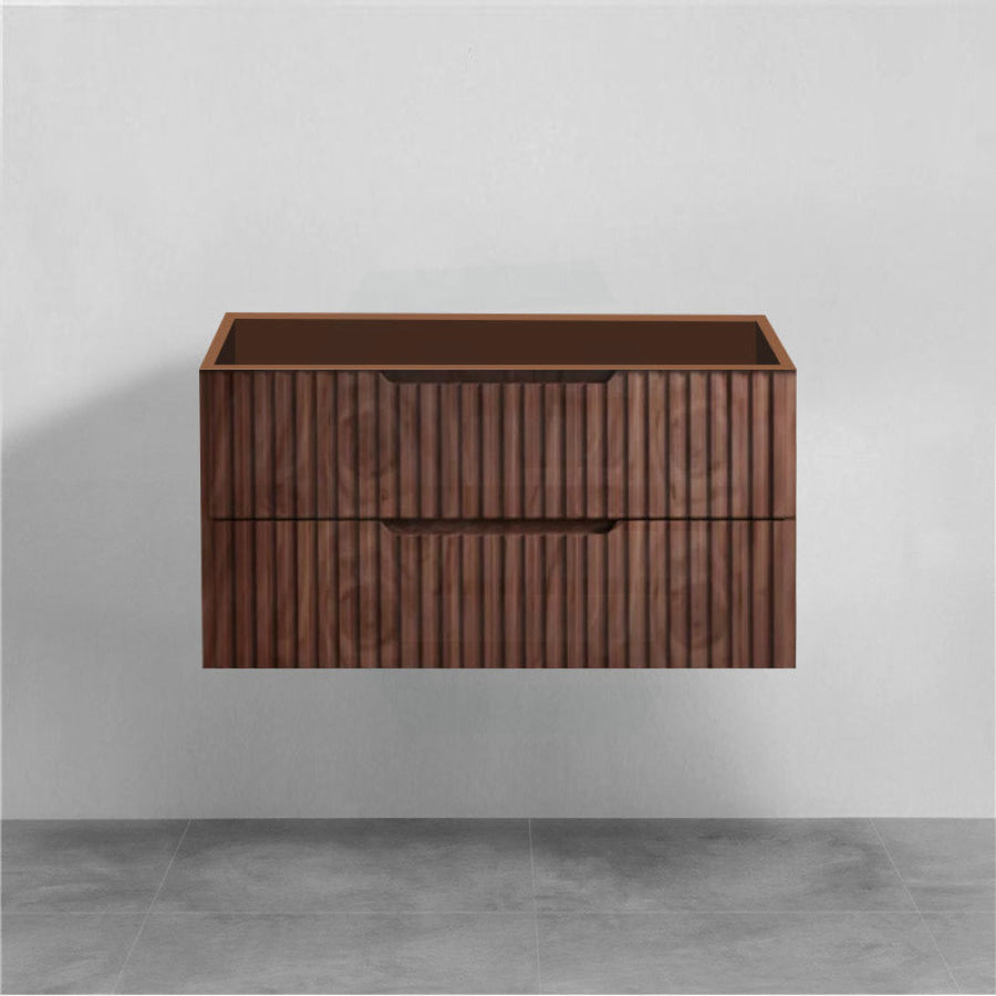 600-1500mm Bali Wall Hung Bathroom Floating Vanity Brown Oak Linear Fluted Cabinet PVC Coating