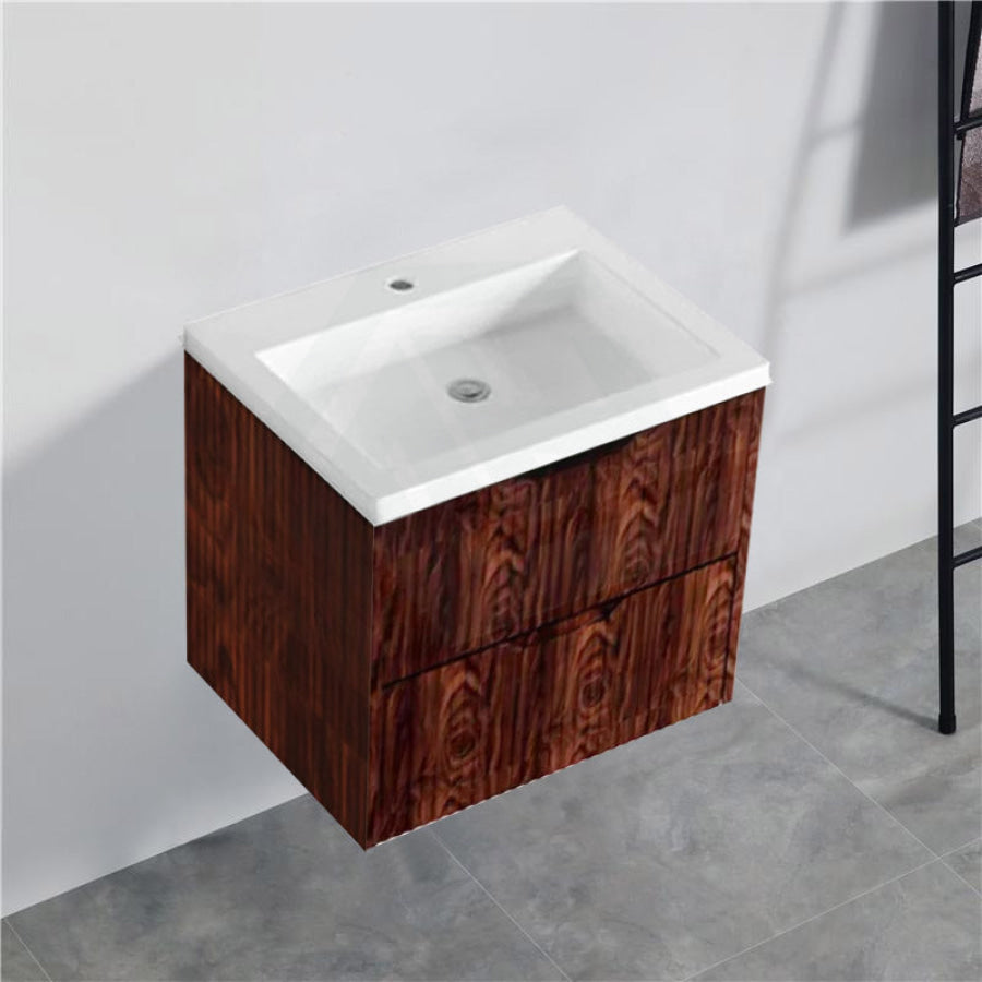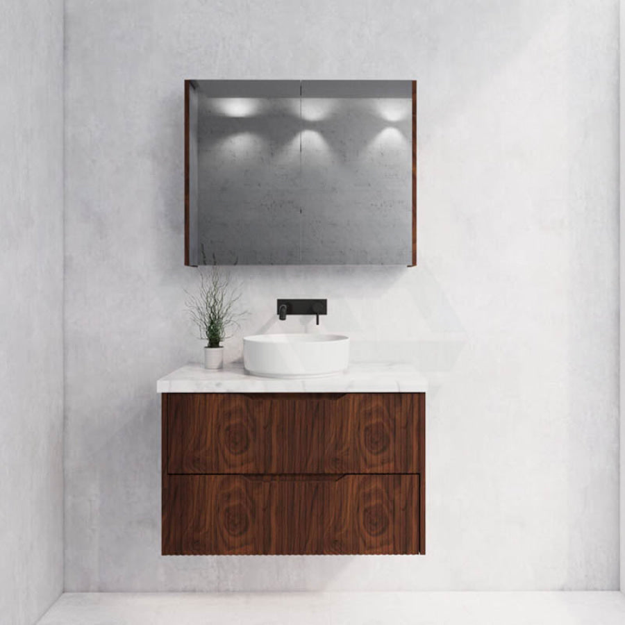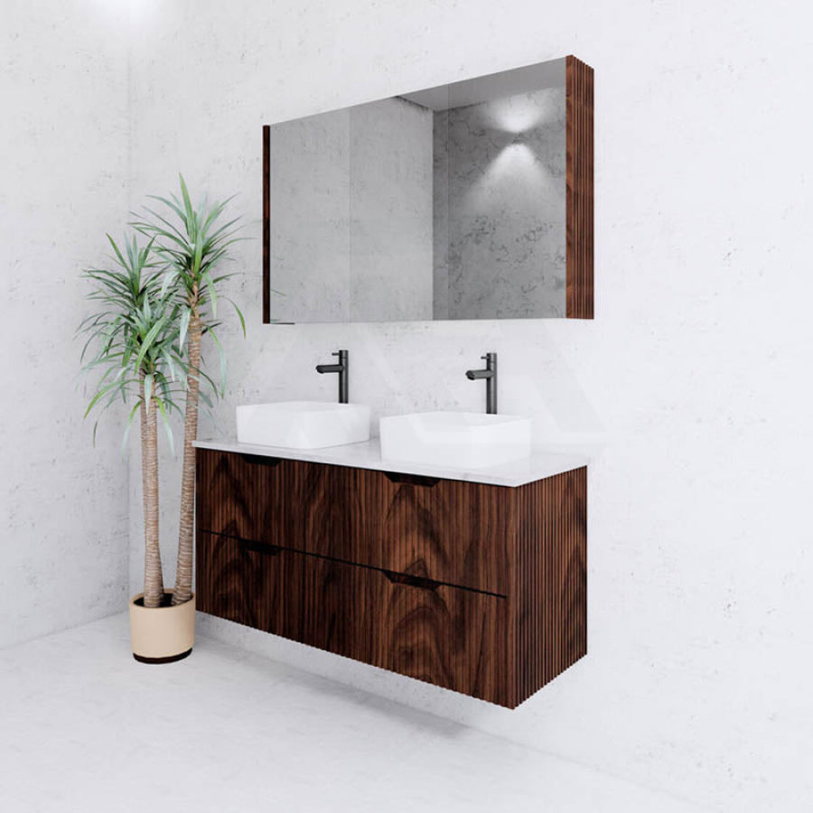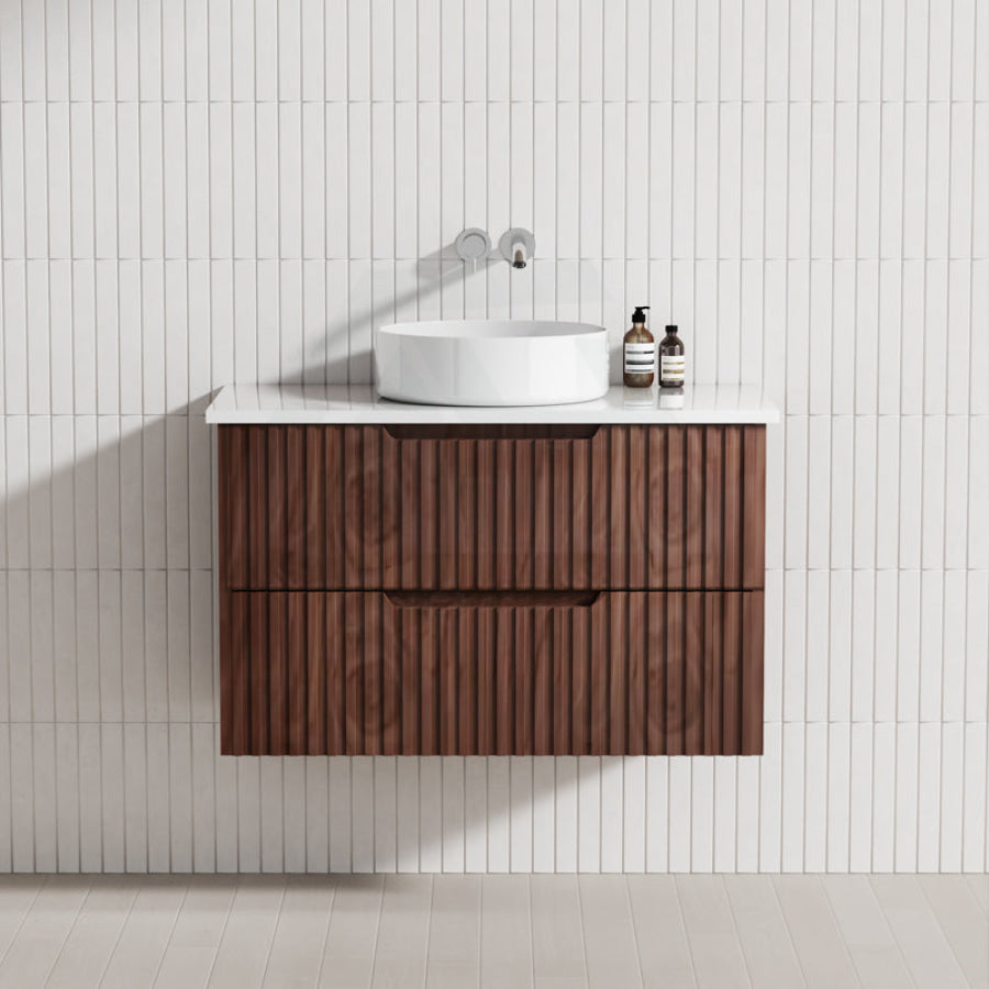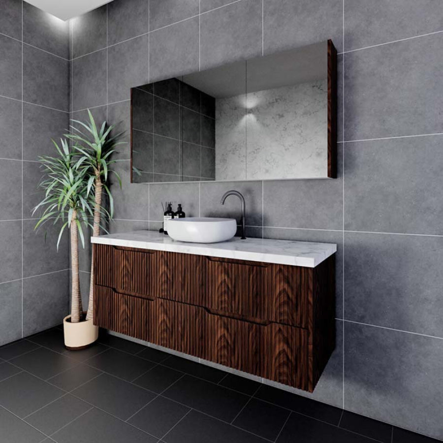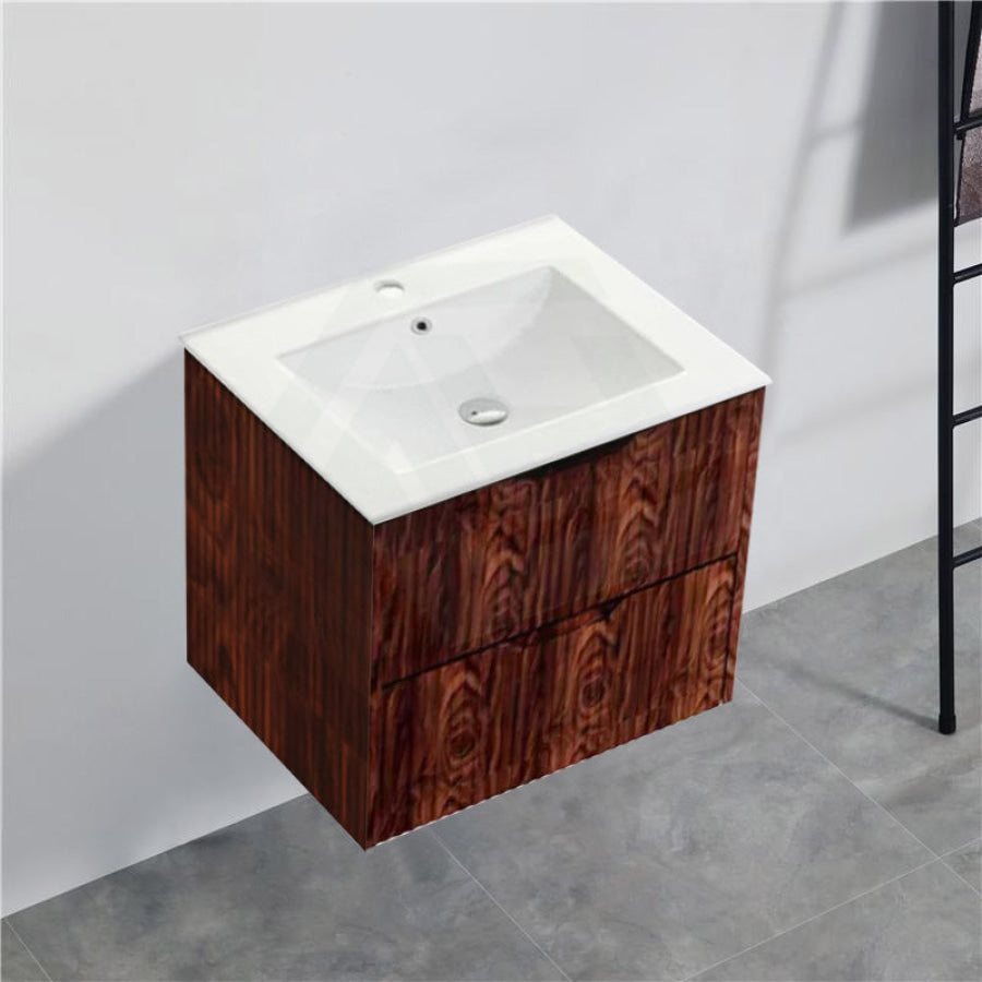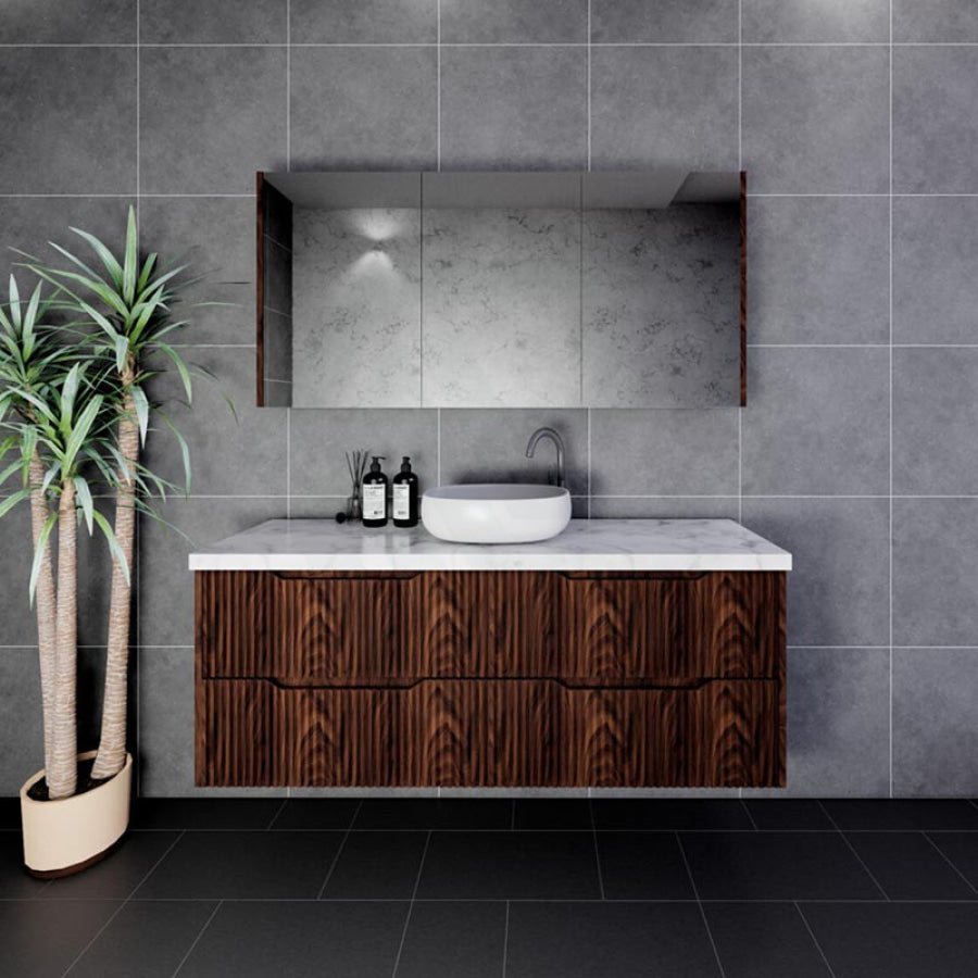 600-1500mm Bali Wall Hung Bathroom Floating Vanity Brown Oak Linear Fluted Cabinet PVC Coating