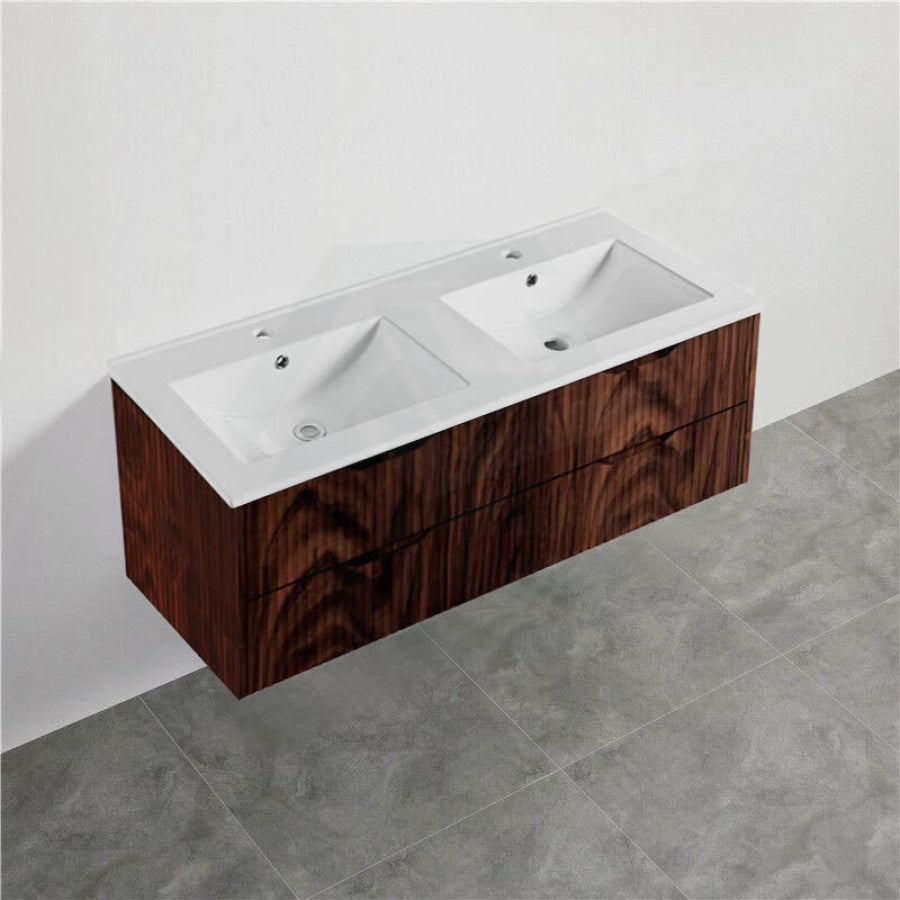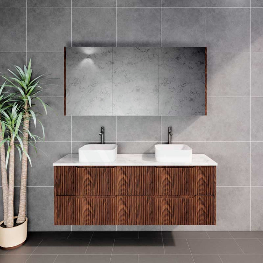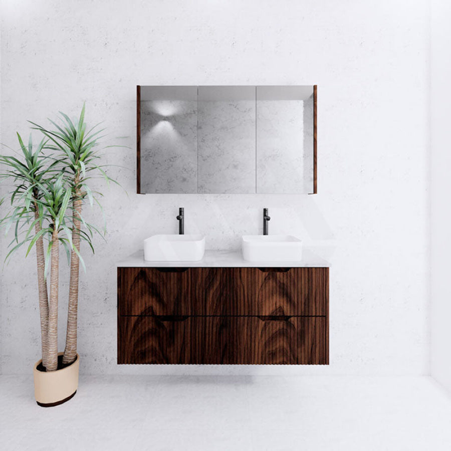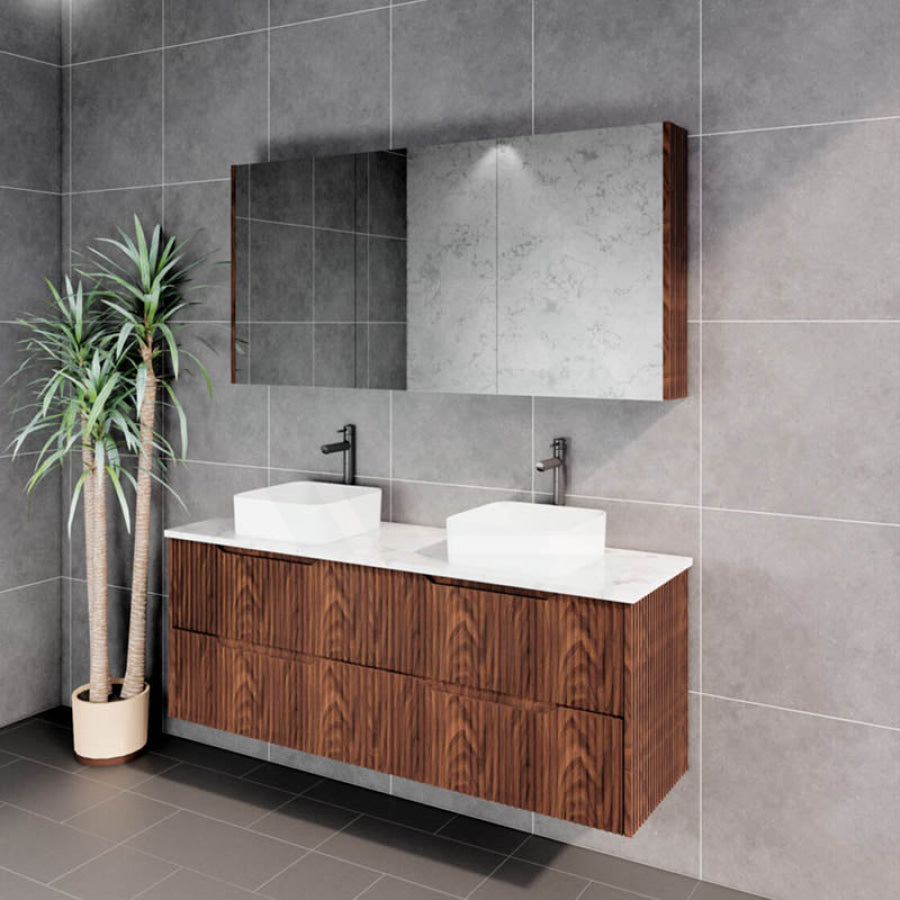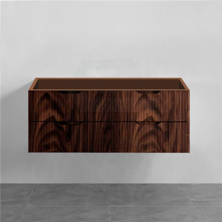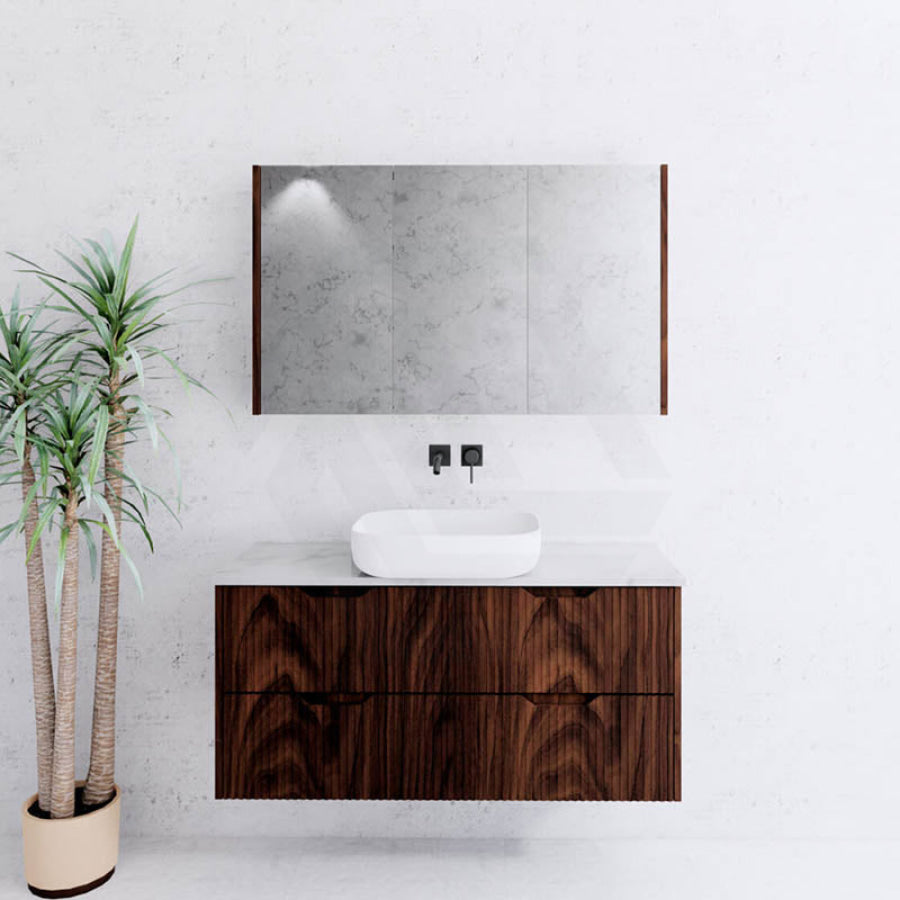 600-1500mm Bali Wall Hung Bathroom Floating Vanity Brown Oak Linear Fluted Cabinet PVC Coating