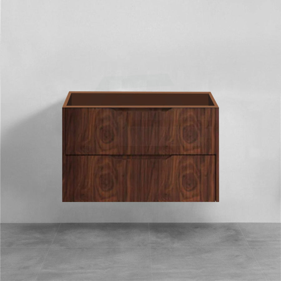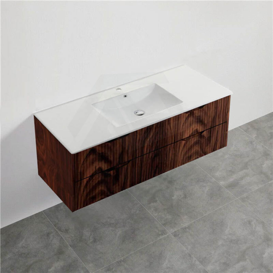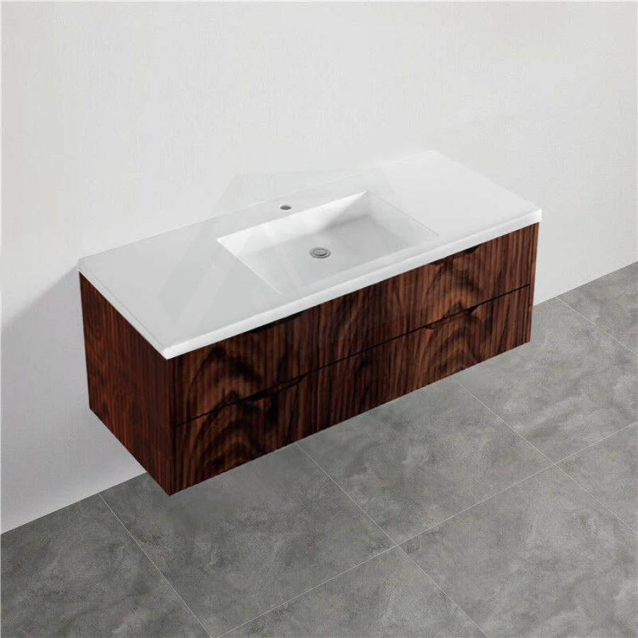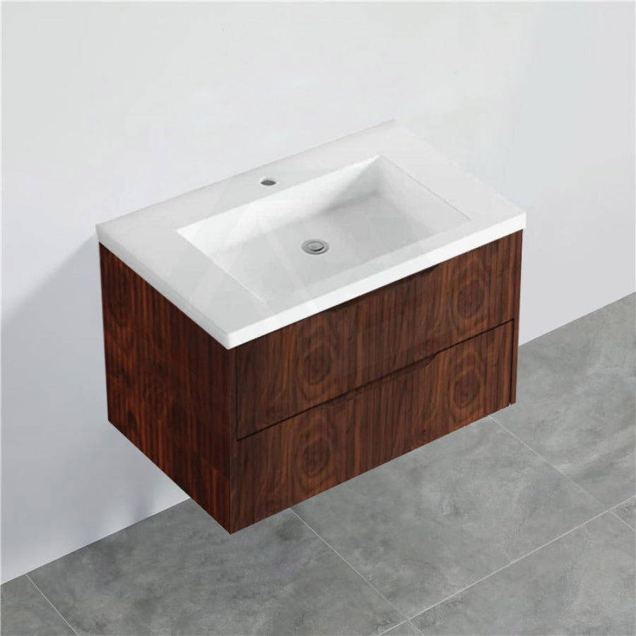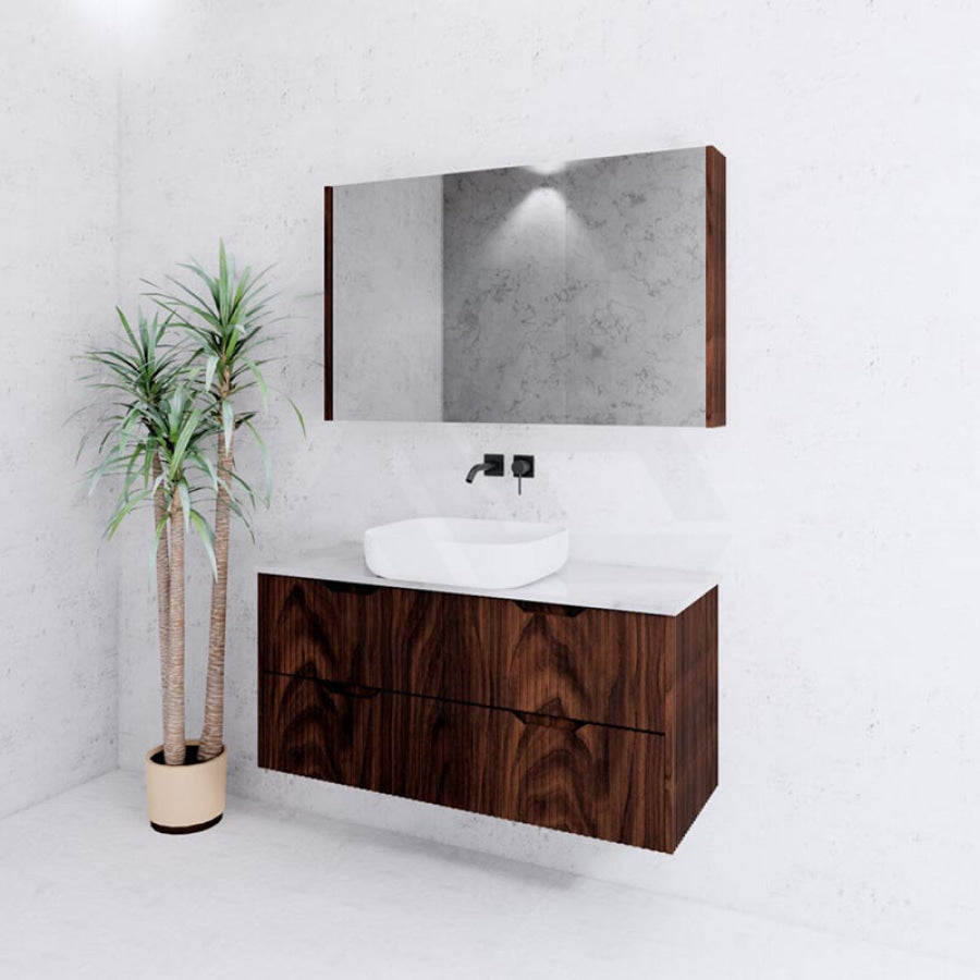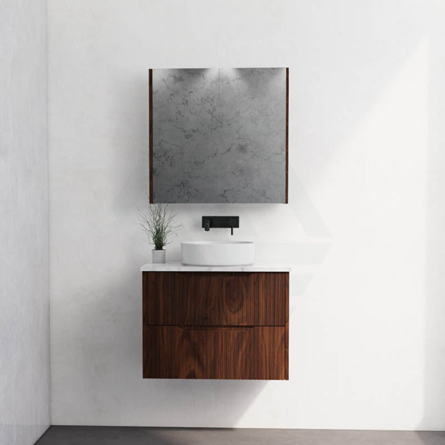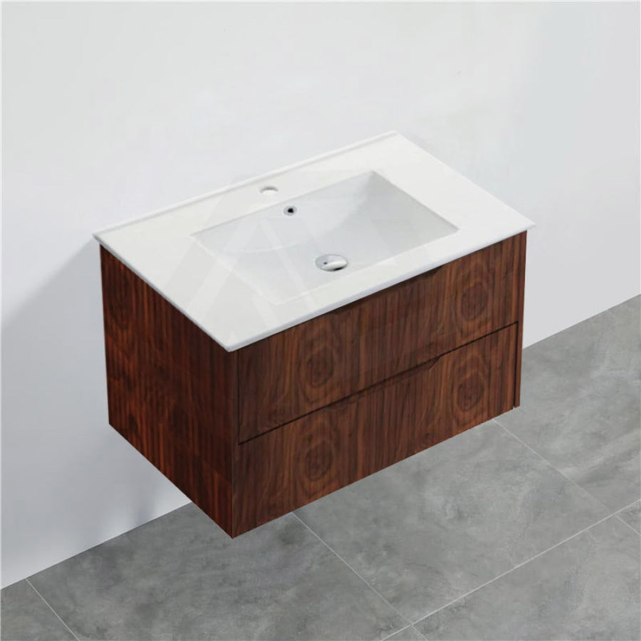 600-1500mm Bali Wall Hung Bathroom Floating Vanity Brown Oak Linear Fluted Cabinet PVC Coating